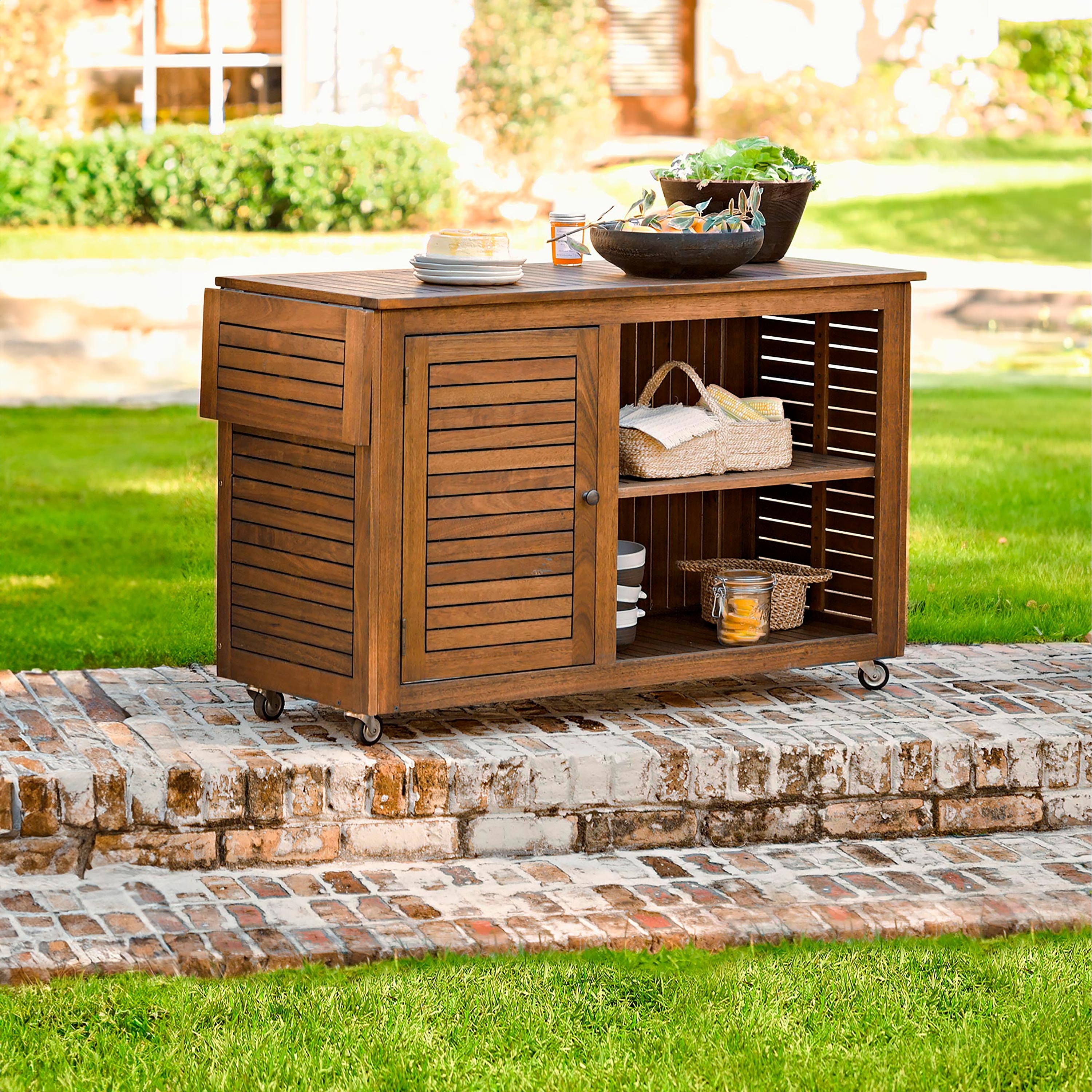 Large Eucalyptus Wood Rolling Outdoor Bar Cart - Natural