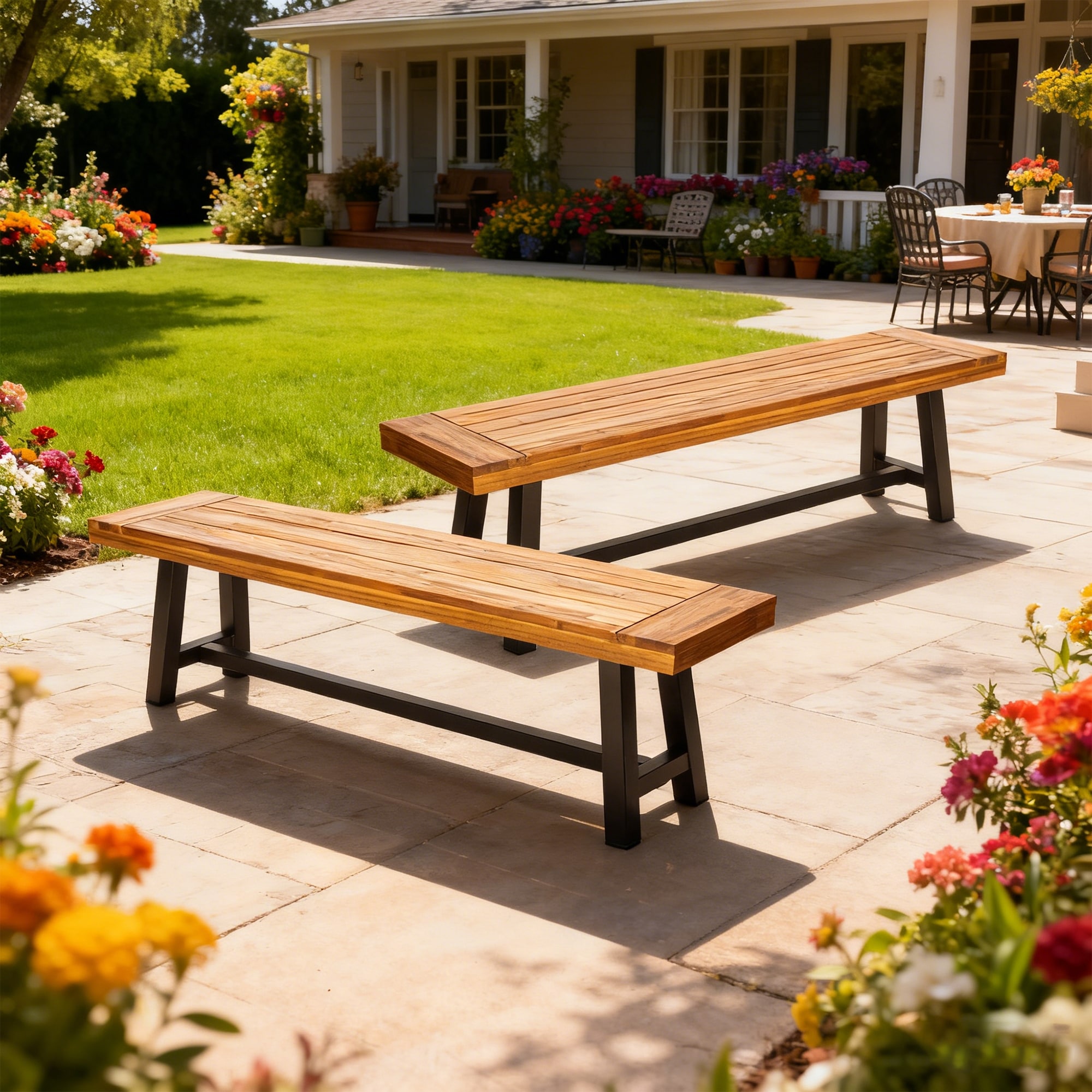 63-Inch Outdoor Table Bench, Acacia Wood Aluminium Patio Bench