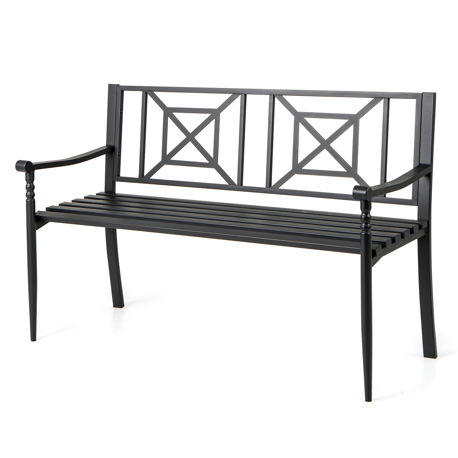 Gymax 51'' Metal Bench Slatted Garden Bench for 2-3 People Patio