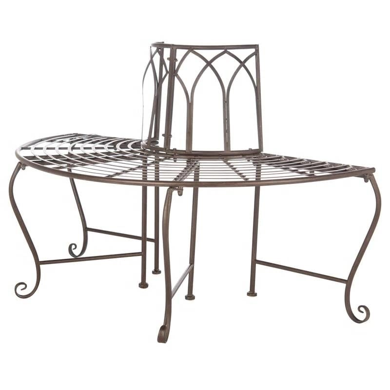 Rustic Bronze Brown Wrought Iron Half-Circle Tree Bench for 2 - 23.5” D x 50'' W X 30.8'' H
