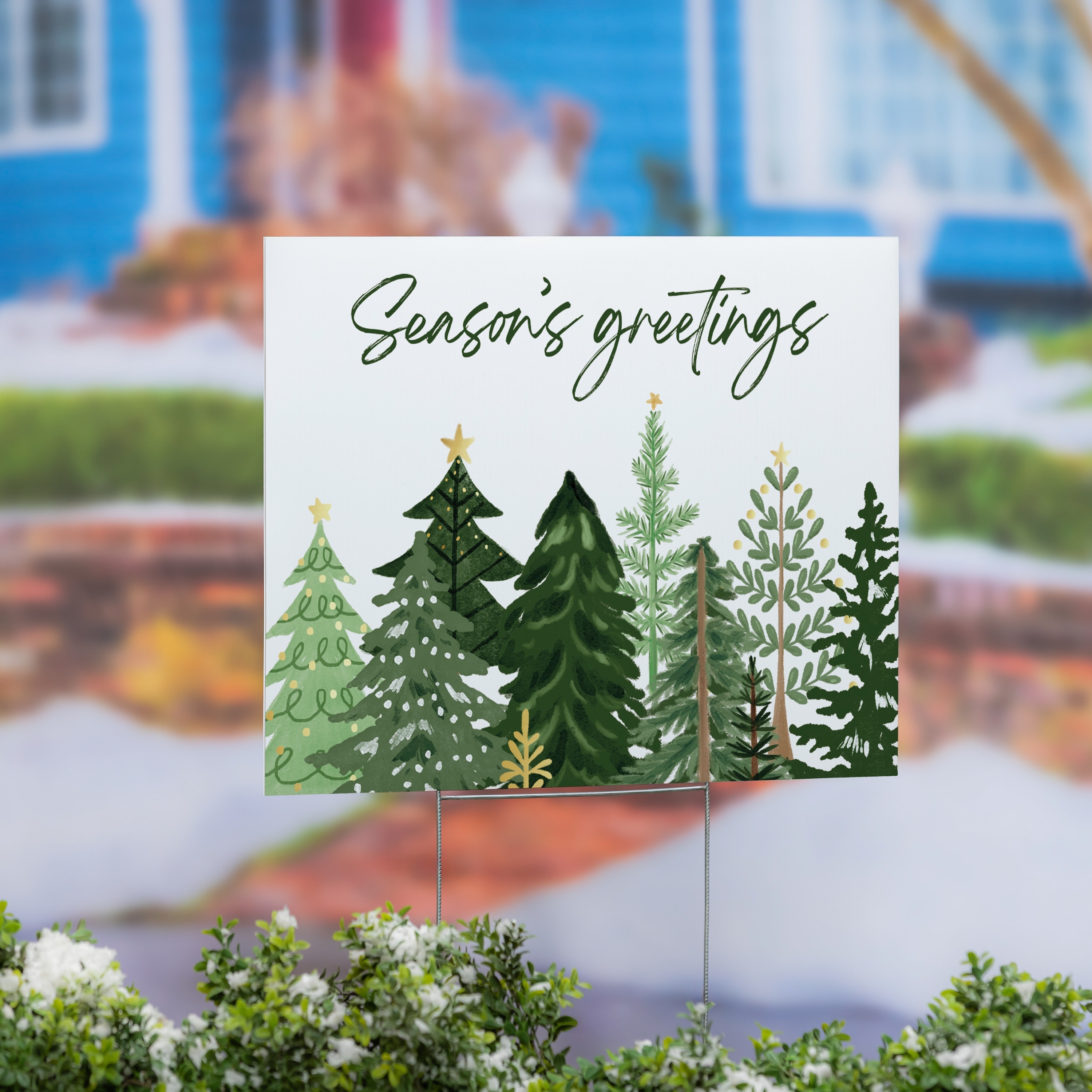 Shades of Green Yard Sign - "Seasons Greetings" - 24" x 18" - Multicolor