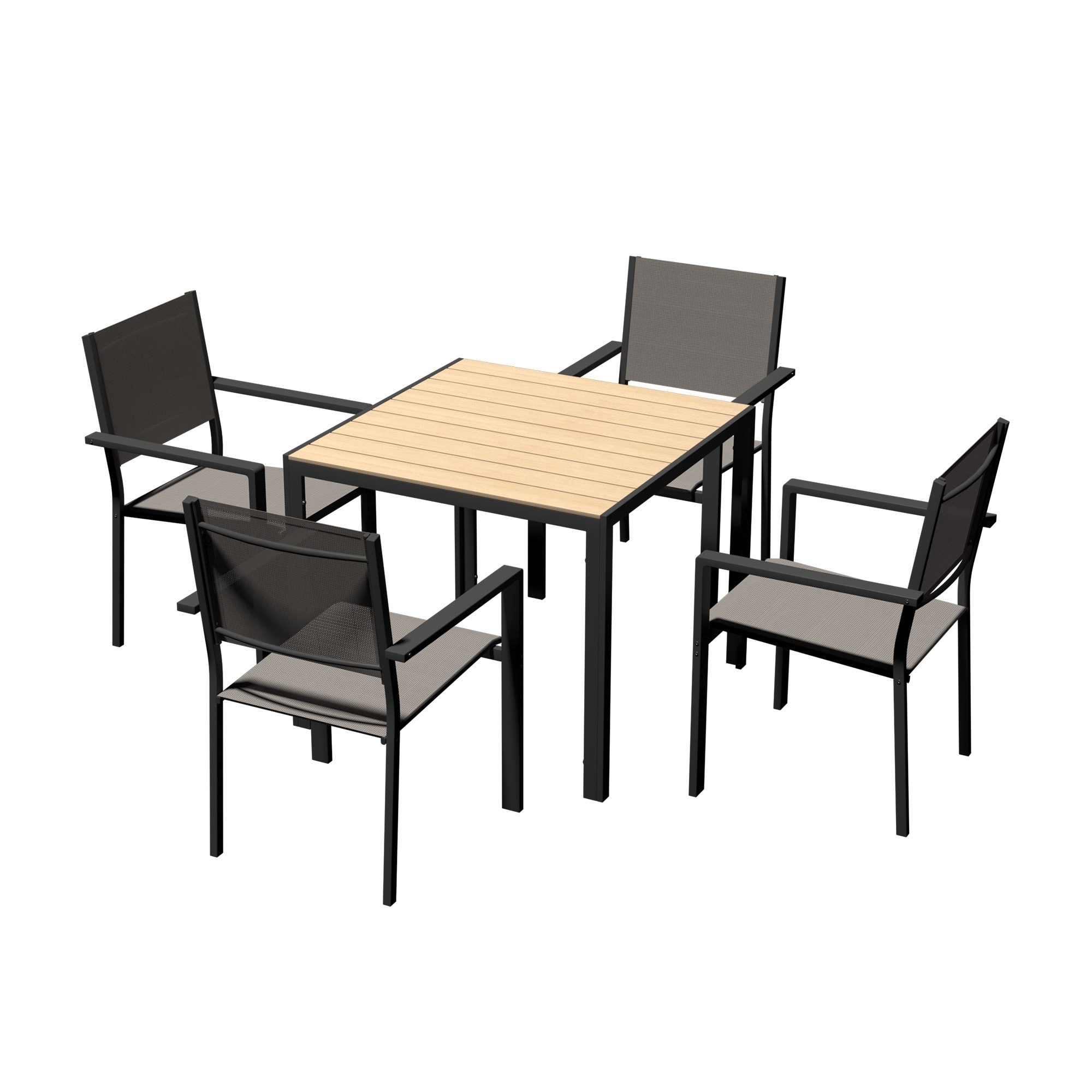 Outdoor Dining Set with Table & Stackable Textilene Chairs, 5-Piece Durable WPC Tabletop & Rust-Resistant Frame for Patio