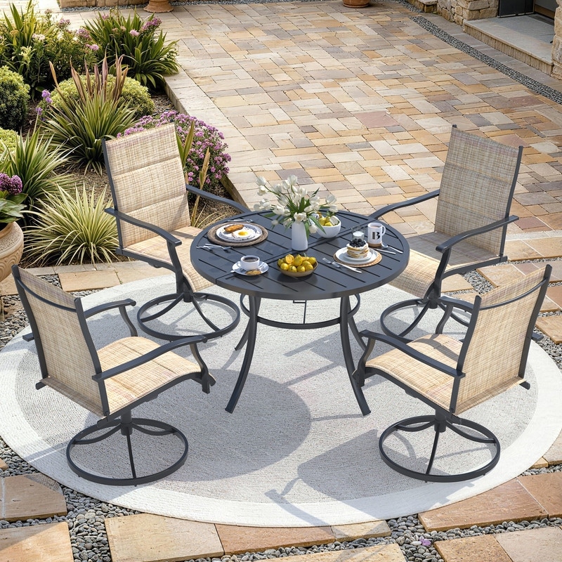 Patio Dining Set, Outdoor Dining Table and Chairs Set with Textilene Chairs, Adjustable Umbrella Hole for Garden, Backyard