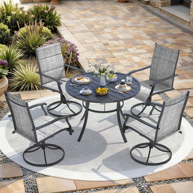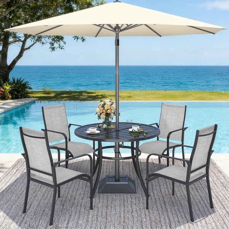 Patio Dining Set, Outdoor Dining Table and Chairs Set with Textilene Chairs, Adjustable Umbrella Hole for Garden, Backyard
