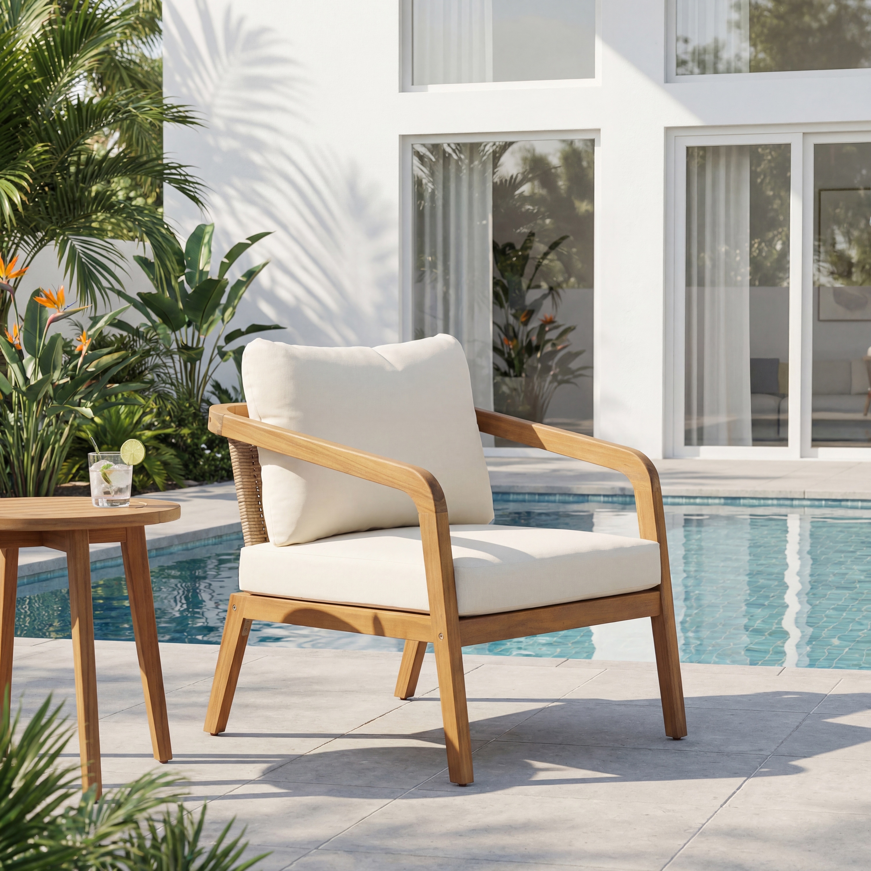 Christopher Knight Home - Modern Acacia Wood Outdoor Club Chair with PE Wicker Back and Water-Resistant Cushions