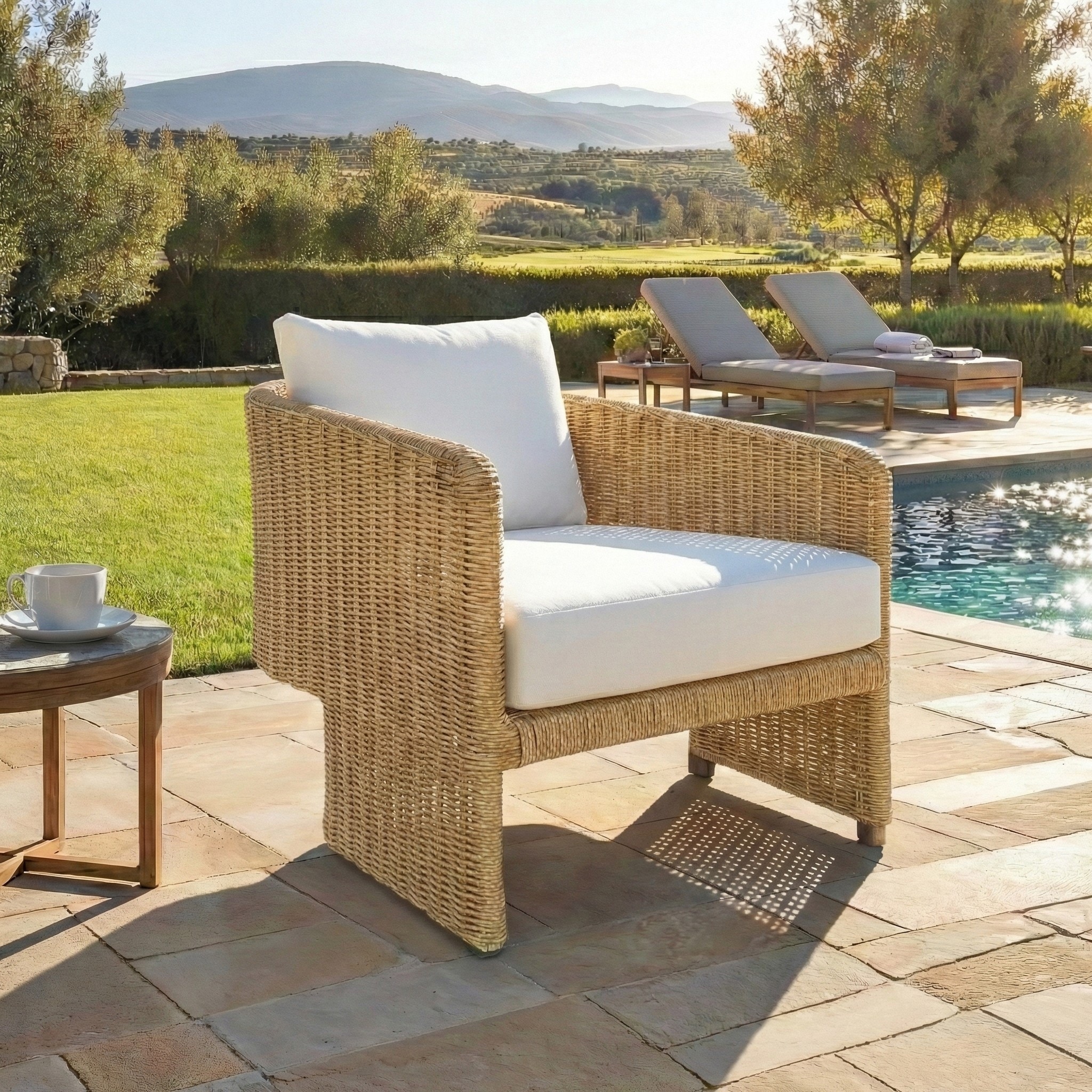 Corvus Rocio Acacia Outdoor Club Chair with Sunbrella Pillow