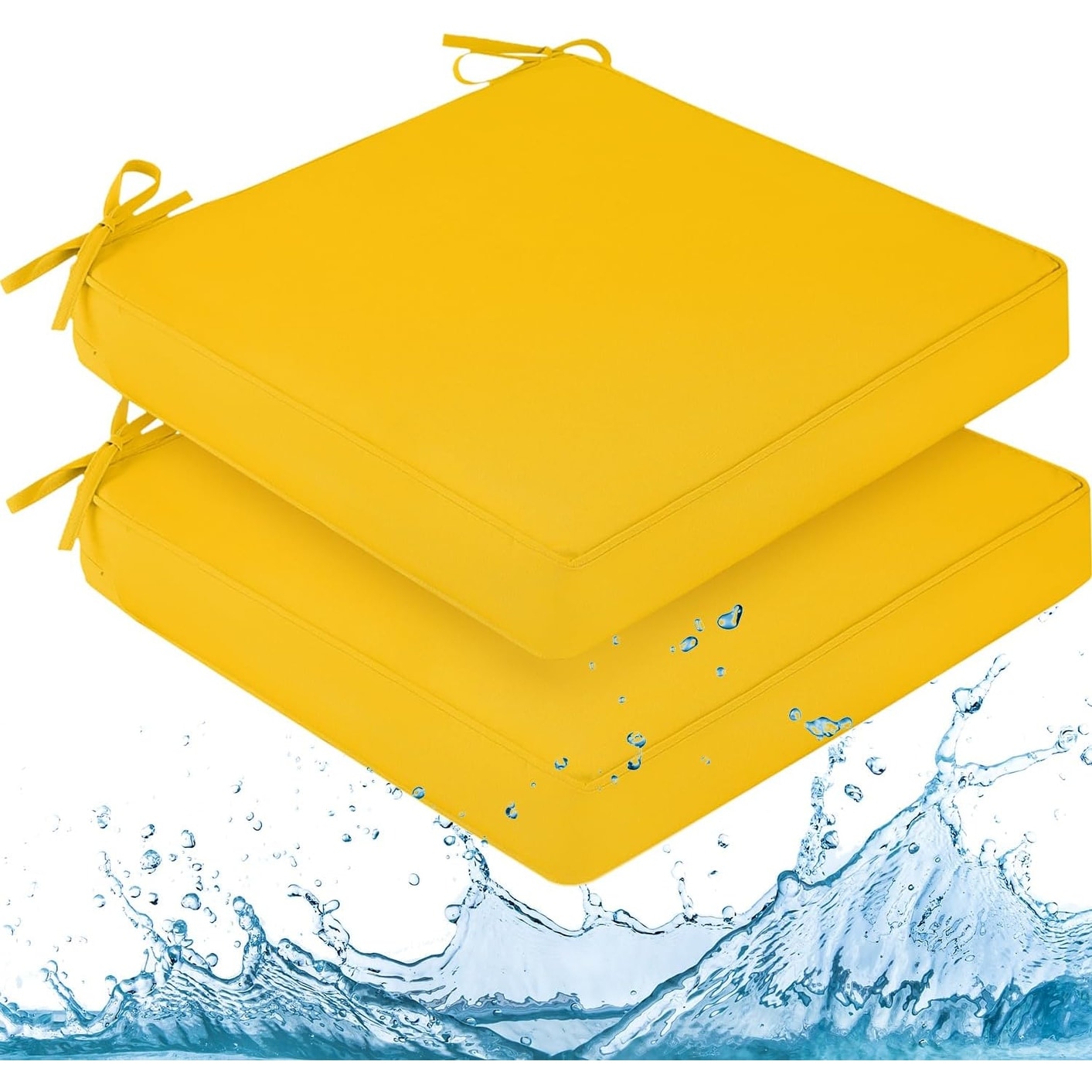 Waterproof Outdoor Chair Cushions, 22x22x3 Inch, Adjustable Ties, Removable Cover, Yellow, 2 Pack