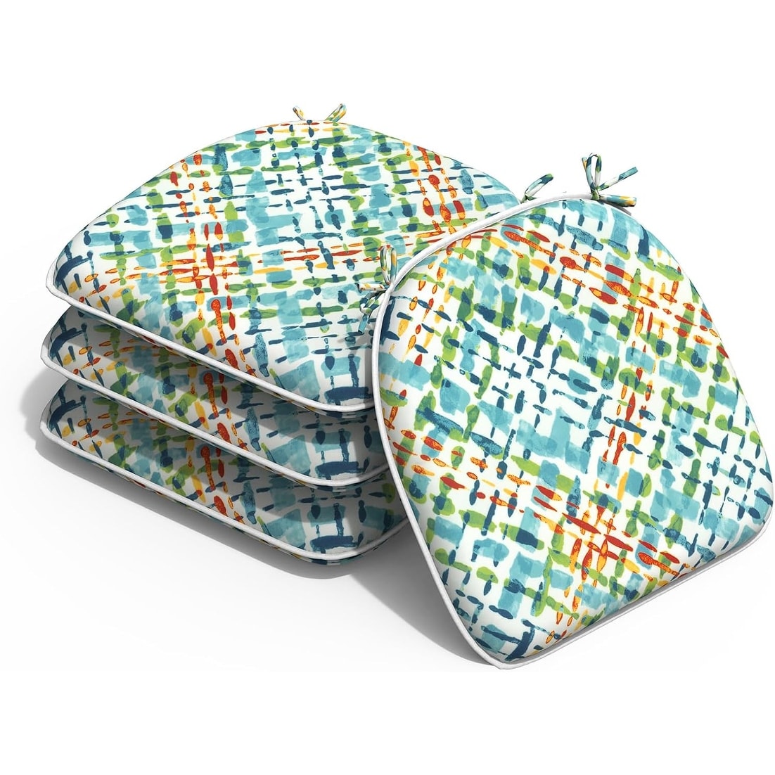Set of 4 Water Resistant Outdoor Chair Cushions with Ties, 16x17 Inch, Acapa Opal Geometric Design