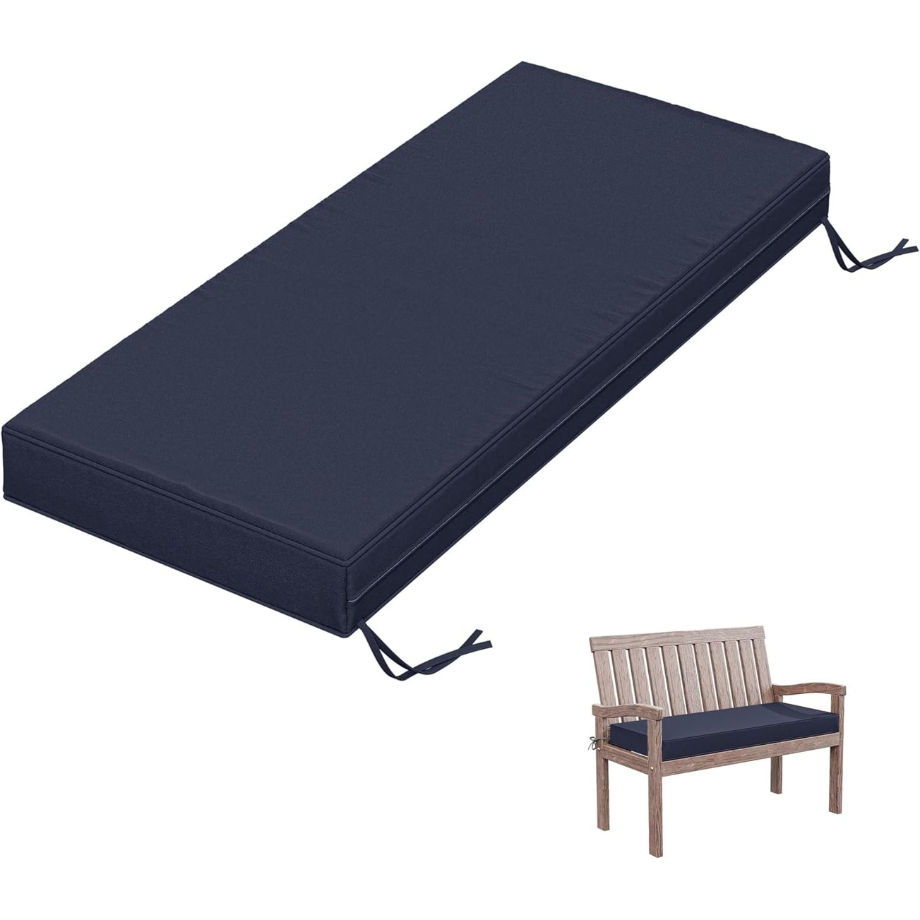 Waterproof Outdoor Bench Cushion 42x18x3.5 Inch with Anti-Slip and Tie Straps, Navy Blue