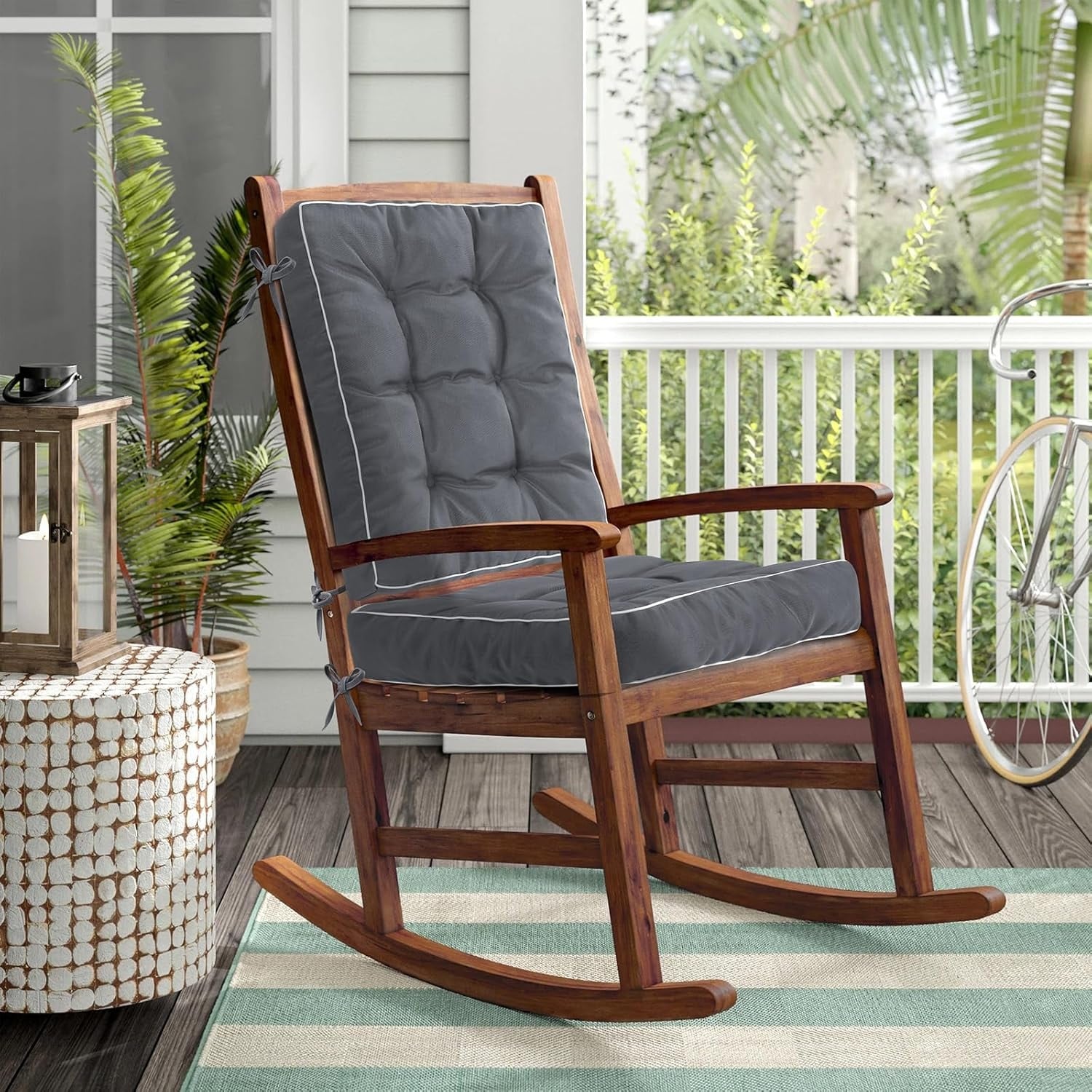 Tufted Rocking Chair Cushion Set with Ties - Water Resistant, Comfortable Foam Filling for Indoor Use (Gray)