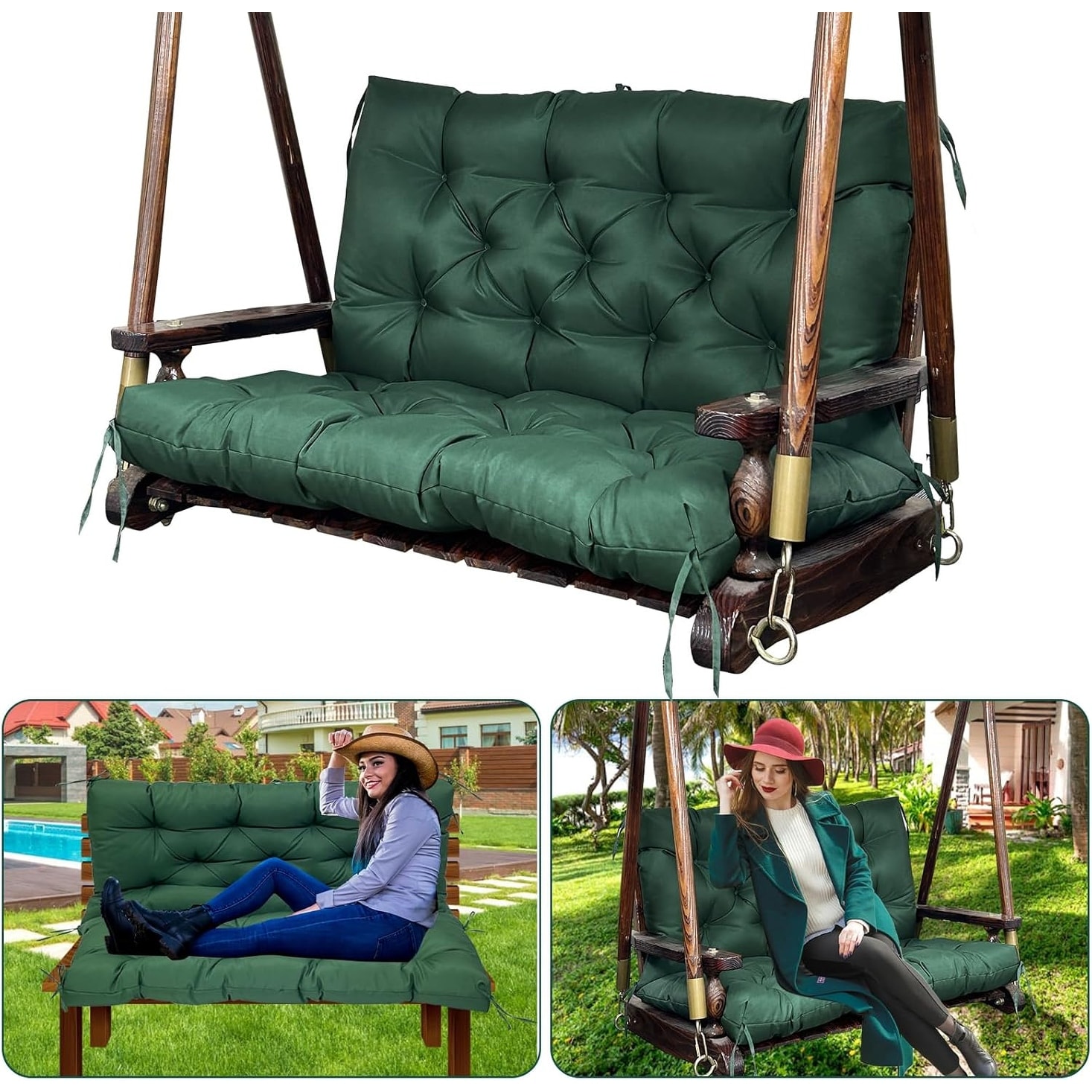 Waterproof Outdoor Swing Cushion with Backrest and Ties for 2-3 Seater Porch Bench