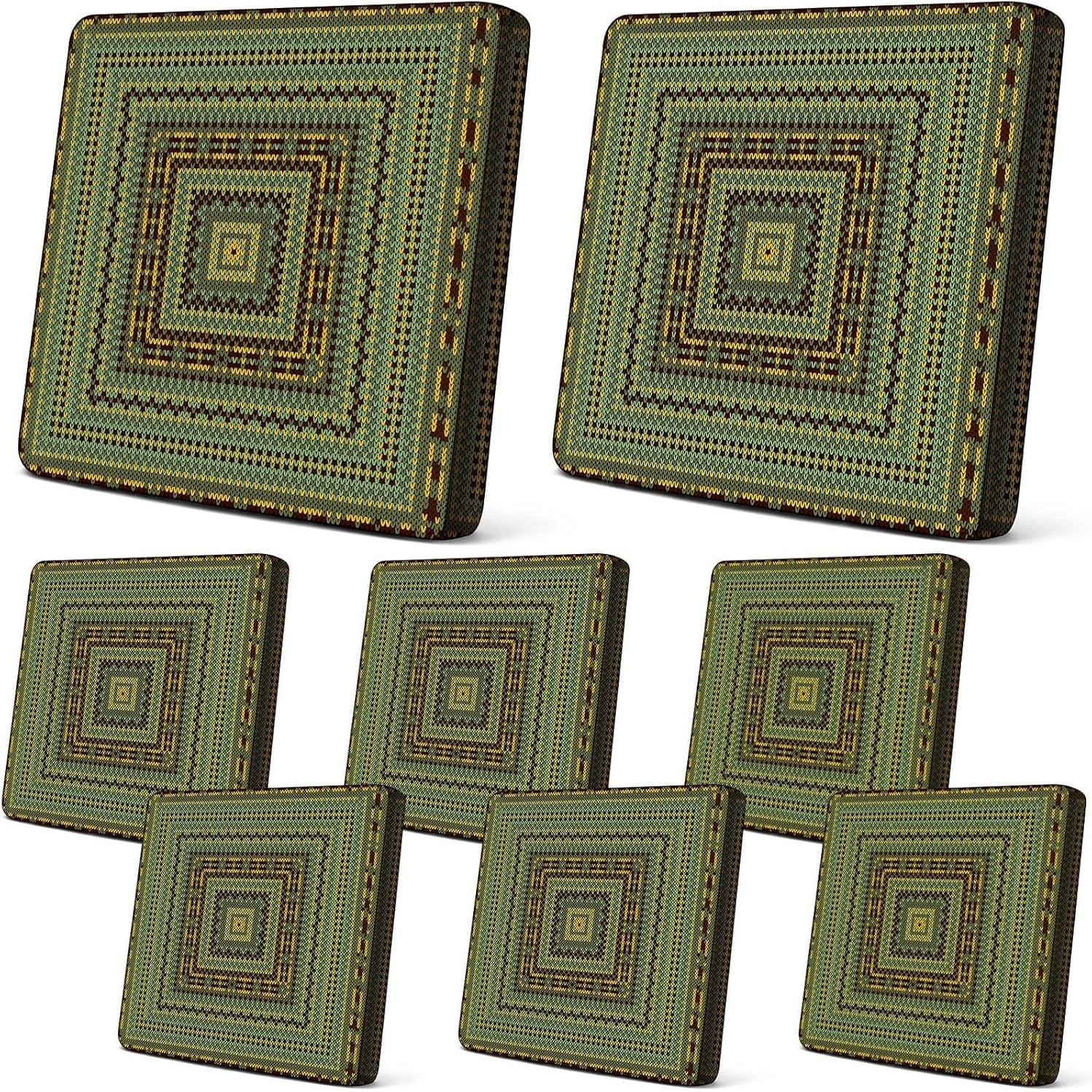 8 Pcs Stretch Knitting Patio Sofa Cushion Covers, Washable, Green Ginger Yellow