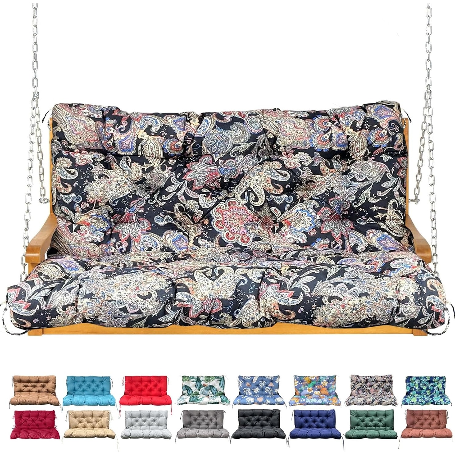 Waterproof Outdoor Swing Replacement Seat Cushions with Backrest, 47x40in, Flower Pattern