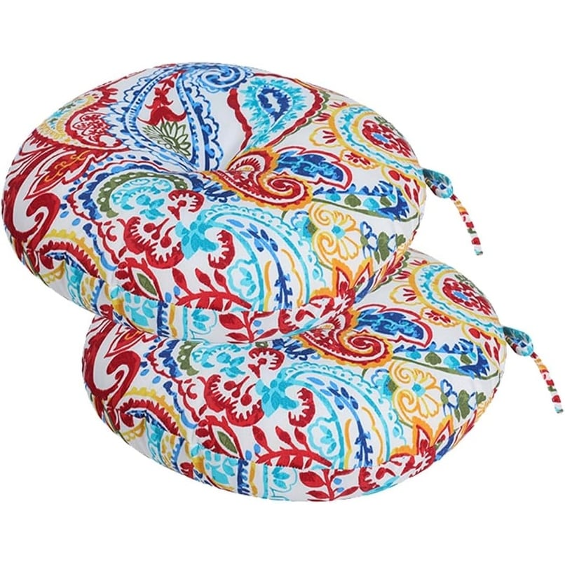 Set of 2 Tufted Round Chair Cushions with Ties, 15x15x4 inches, Water Resistant for Indoor and Outdoor Use