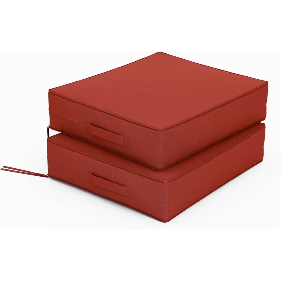 Waterproof Outdoor Patio Chair Cushions 18.5x16x4 Inch with Ties & Handle, Set of 2, Terra Red