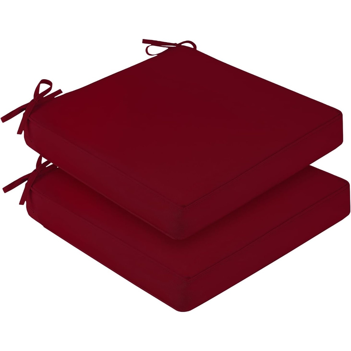 Waterproof Outdoor Chair Cushions Set of 2, 19x19x3 Inch, Non-Slip Ties, Removable Cover, Burgundy