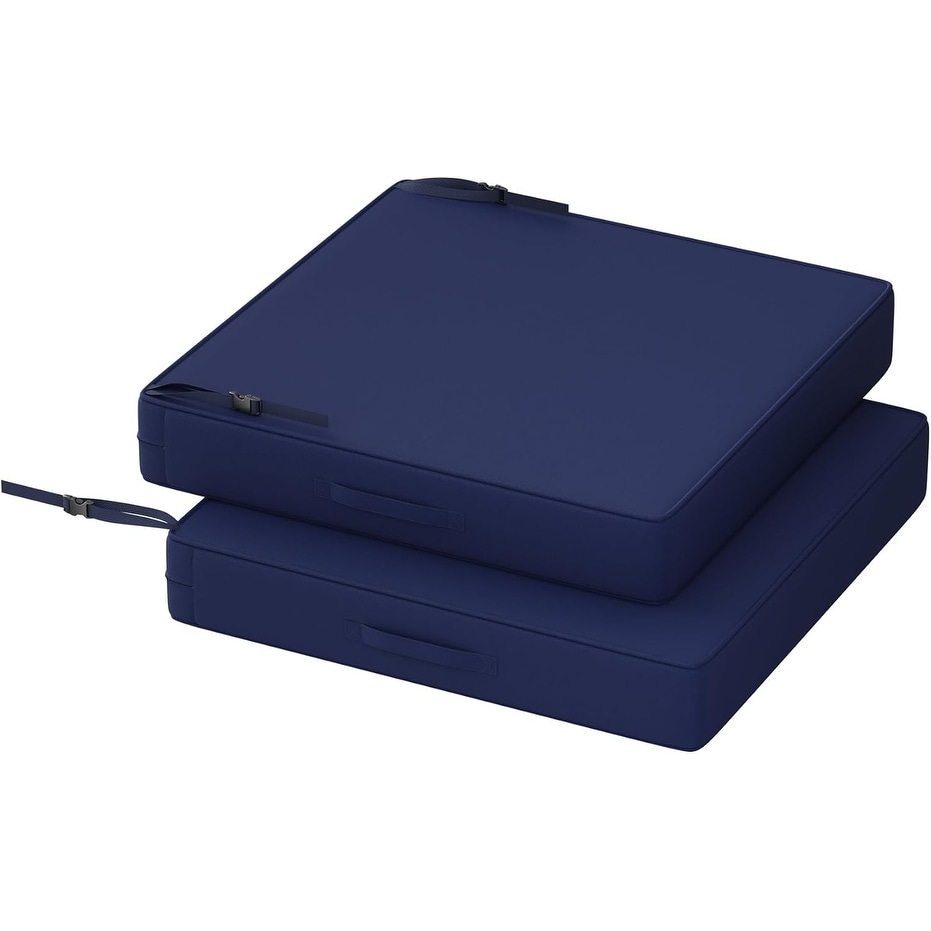 Waterproof Navy Blue Outdoor Cushions 24x24x4 Inch 2-Piece Set with Non-Slip Ties & Easy-Grip Handles