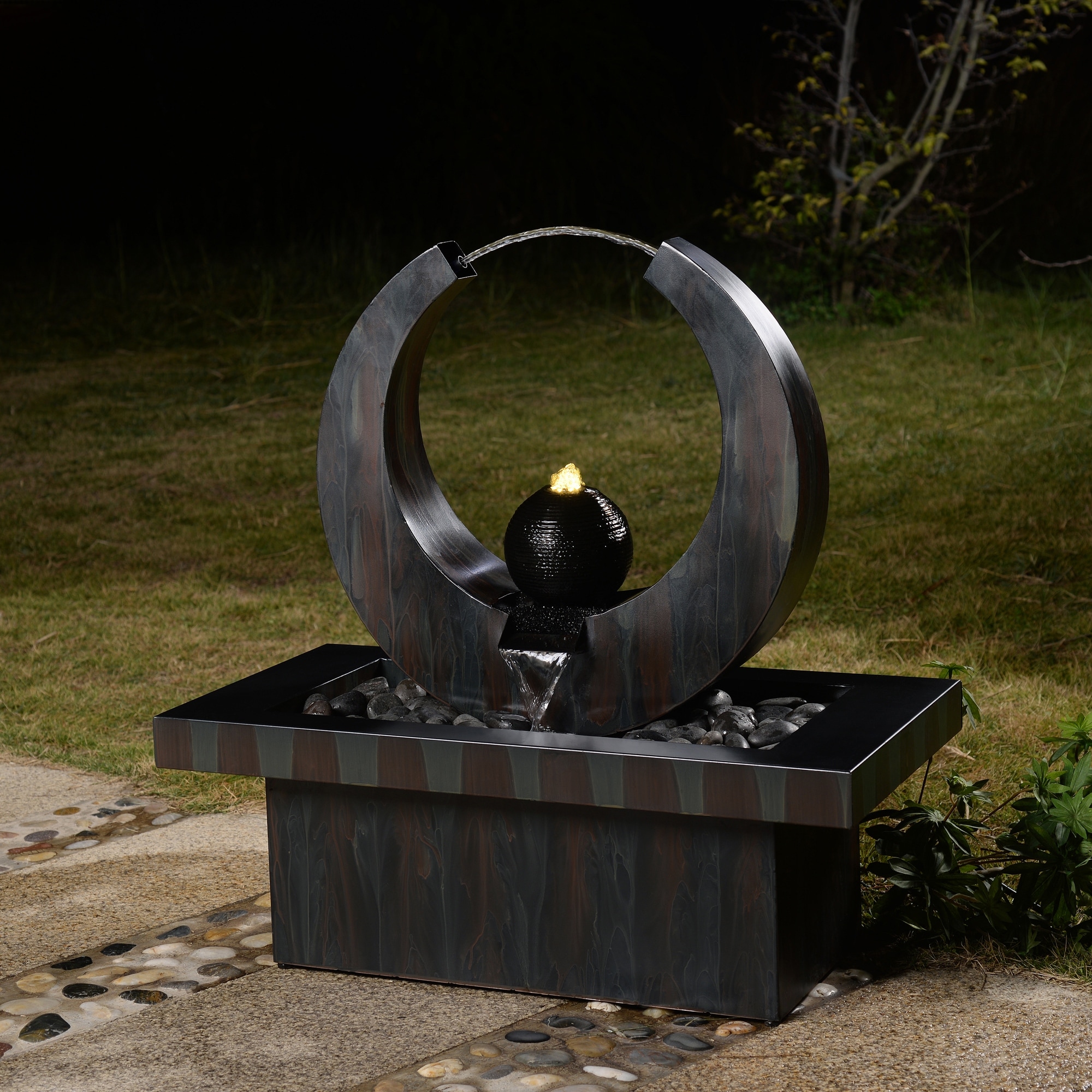 Outdoor Metal Fountain with LED Lights - Rusty Gray
