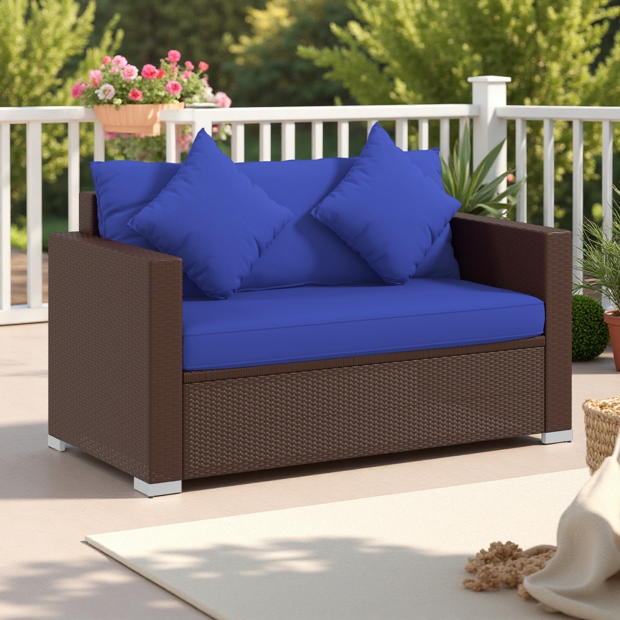 2-Seater Wicker Loveseat with Cushions and Throw Pillows for Porch, Backyard