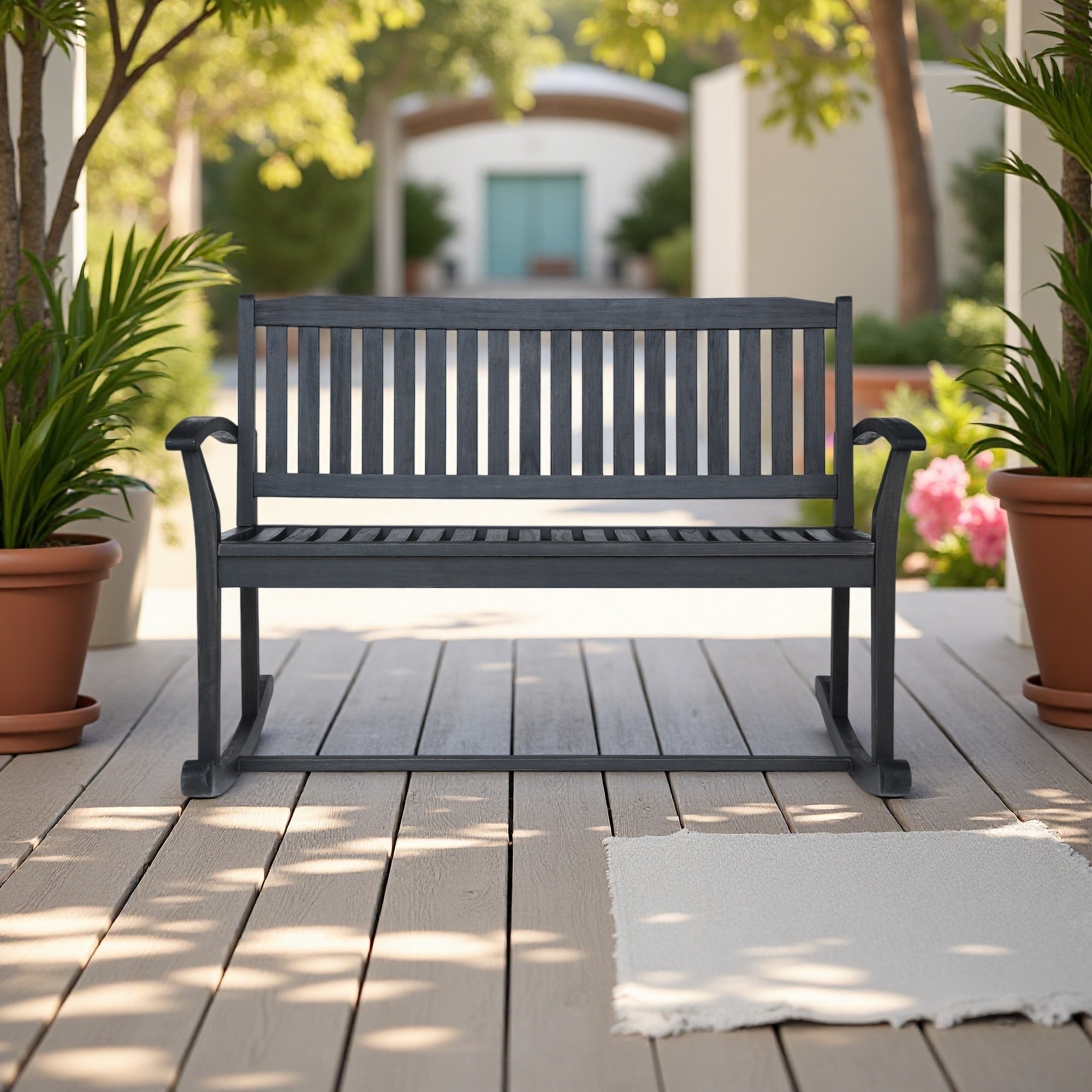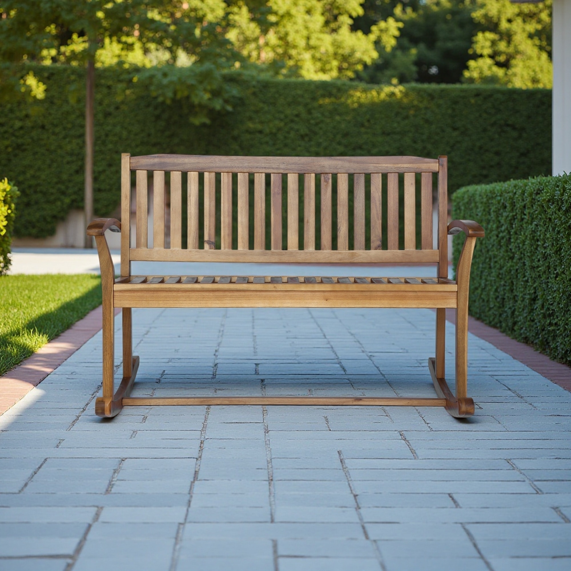 2-Seater Outdoor Rocker Bench with with Armrests for Backyard, Garden