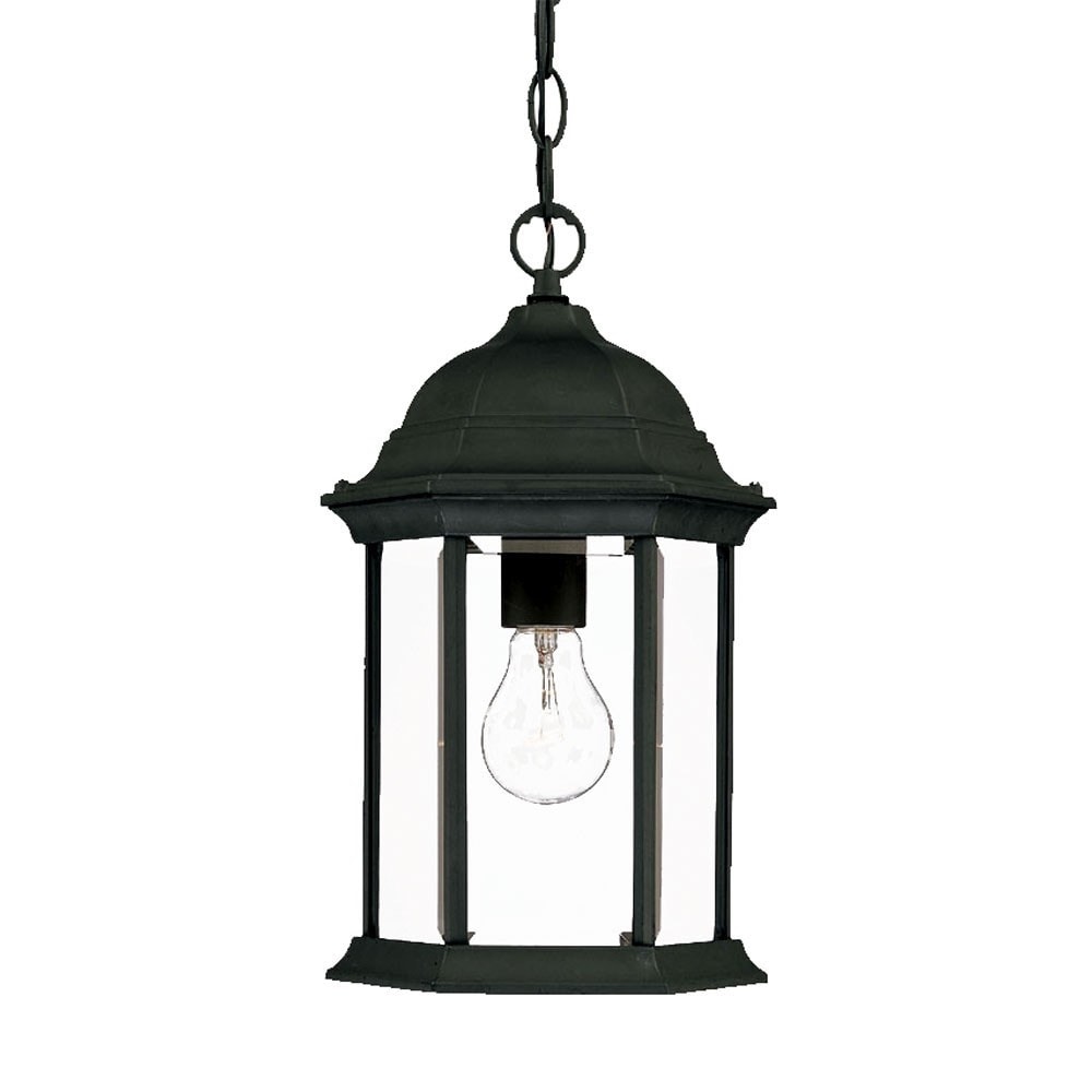 1-light Black Metal With Glass Shade Outdoor Hanging Pendant Light