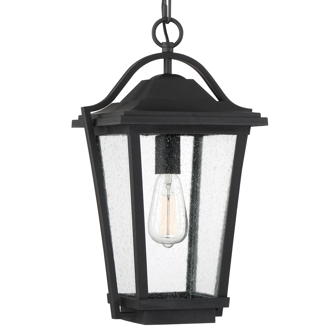 1-Light Matte Black Outdoor Pendant Light with Clear Glass Shade
