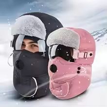Winter Windproof Riding Hat With Earmuffs, Mask & Goggles (2 Piece Set) pink