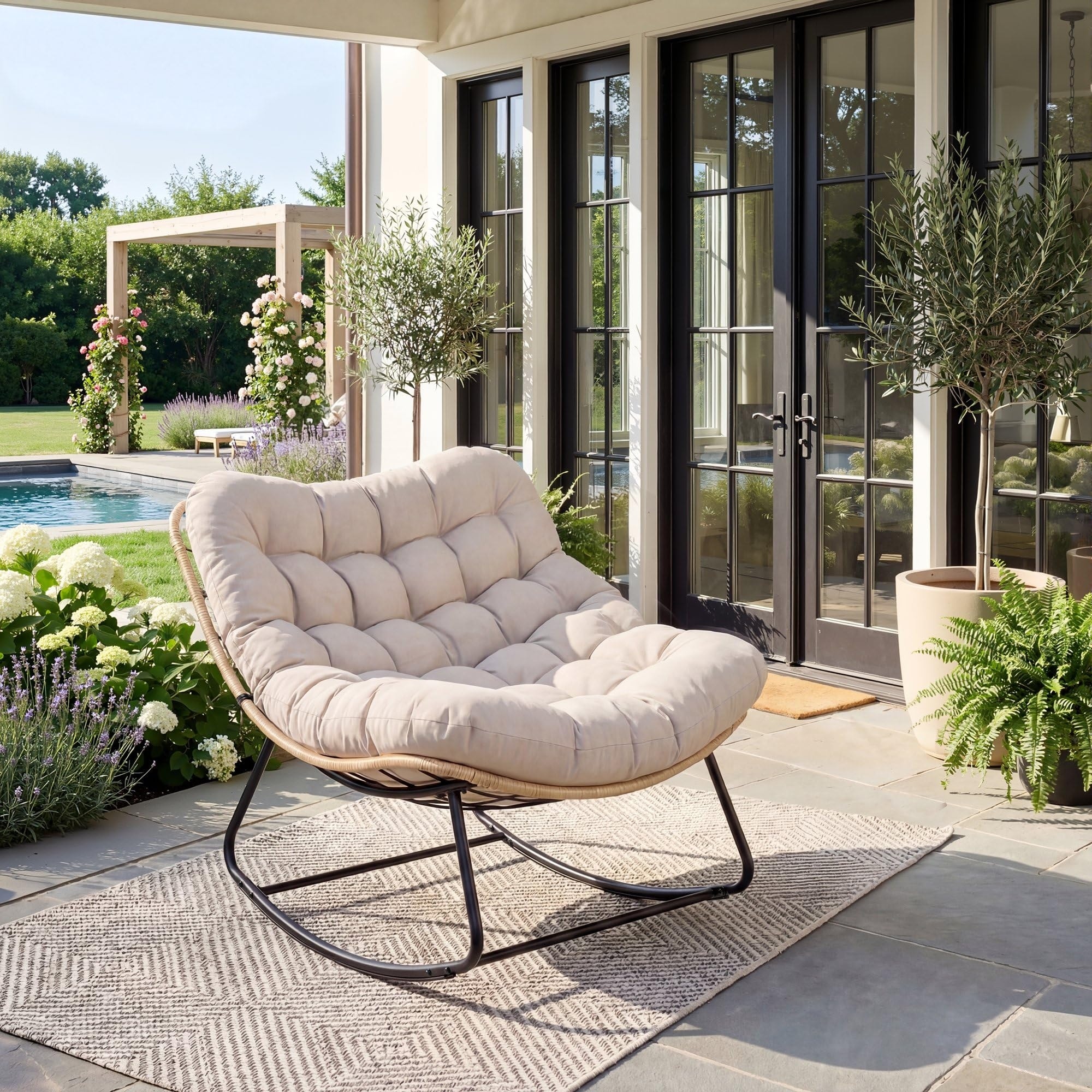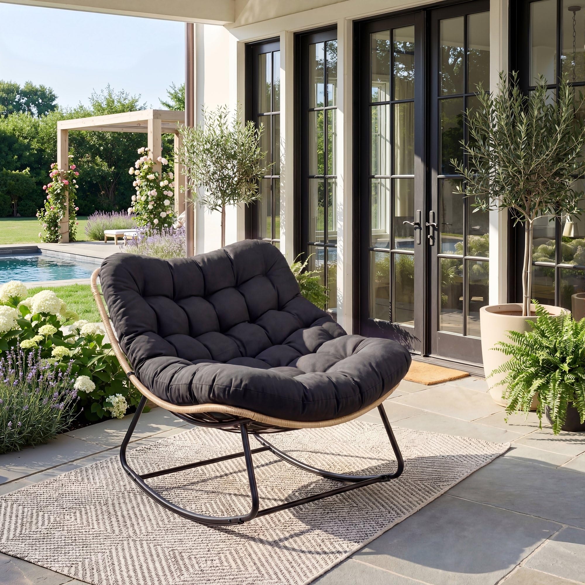 Garvee Outdoor Rattan Rocker Recliner Chair with Padded Thick Cushion for Patio