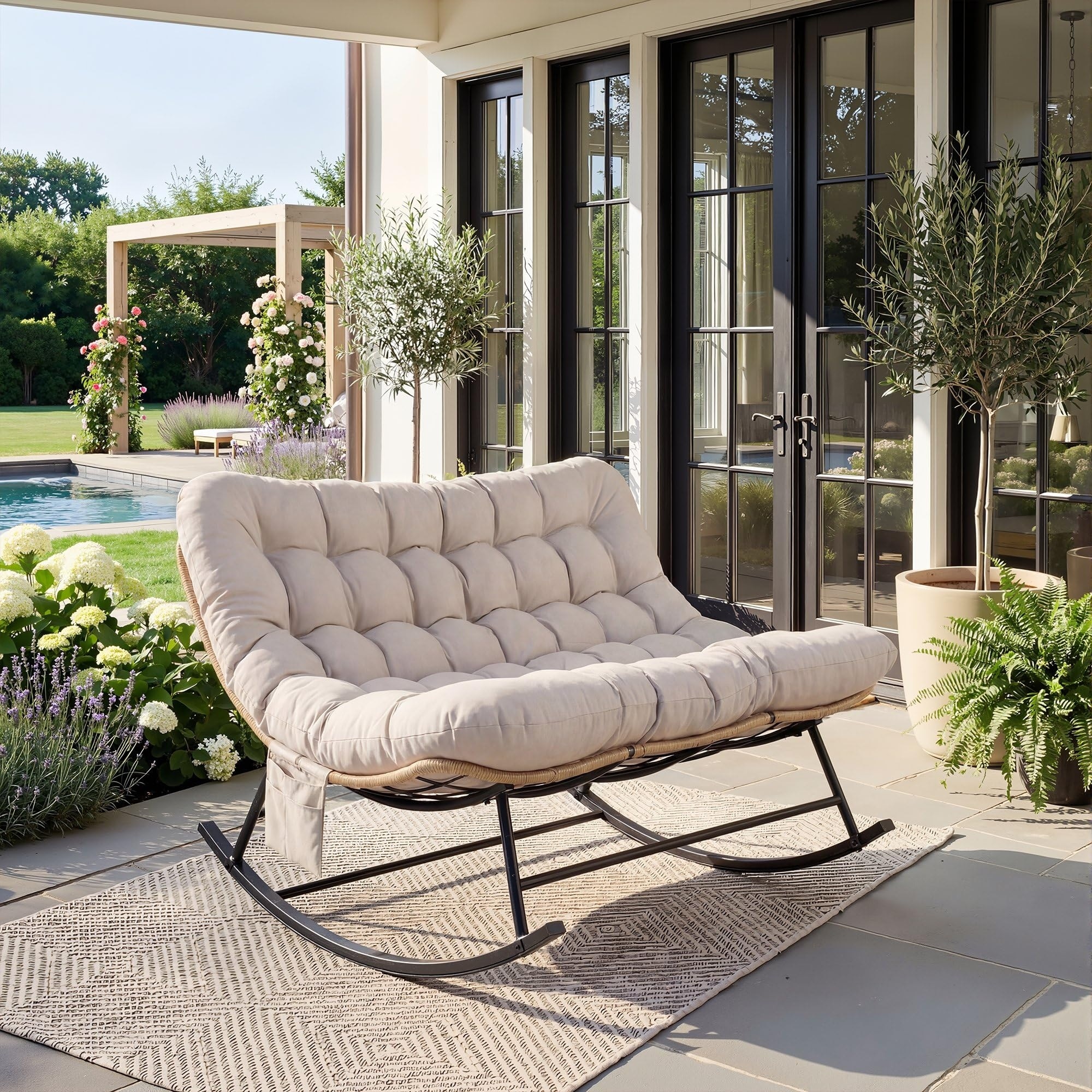 Heavy Duty Rocking Chair 450 Lbs Capacity Waterproof Fabric Indoor Outdoor Rocker with Thick Cushion Metal Frame