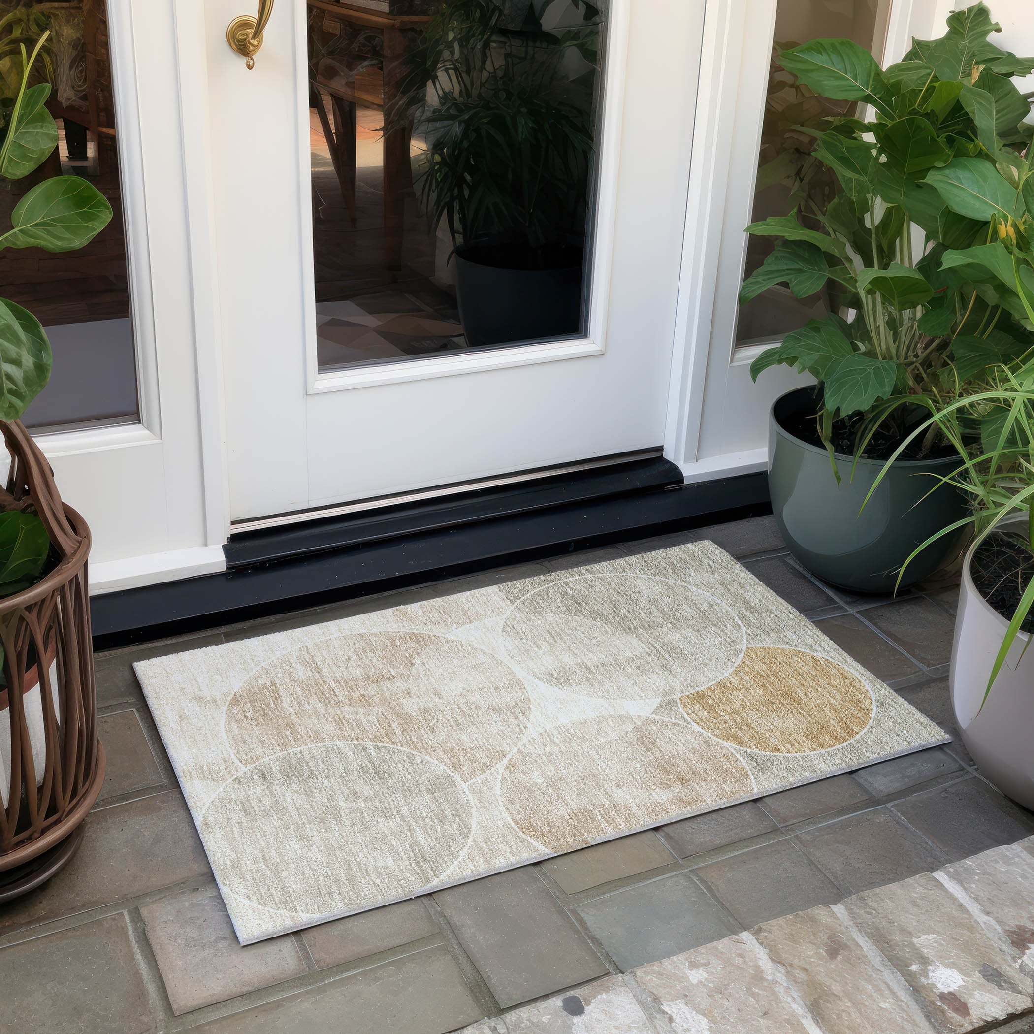 Machine Washable Indoor/ Outdoor Abstract Circles Chantille Rug