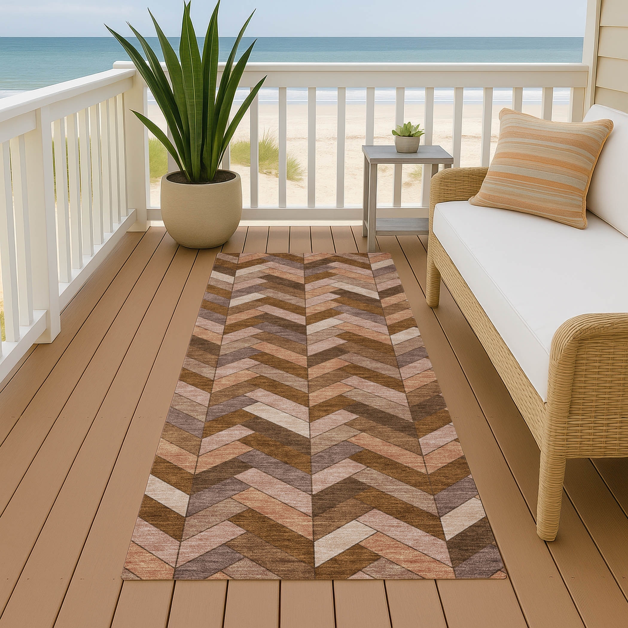 Machine Washable Indoor/ Outdoor Modern Chevron Chantille Rug