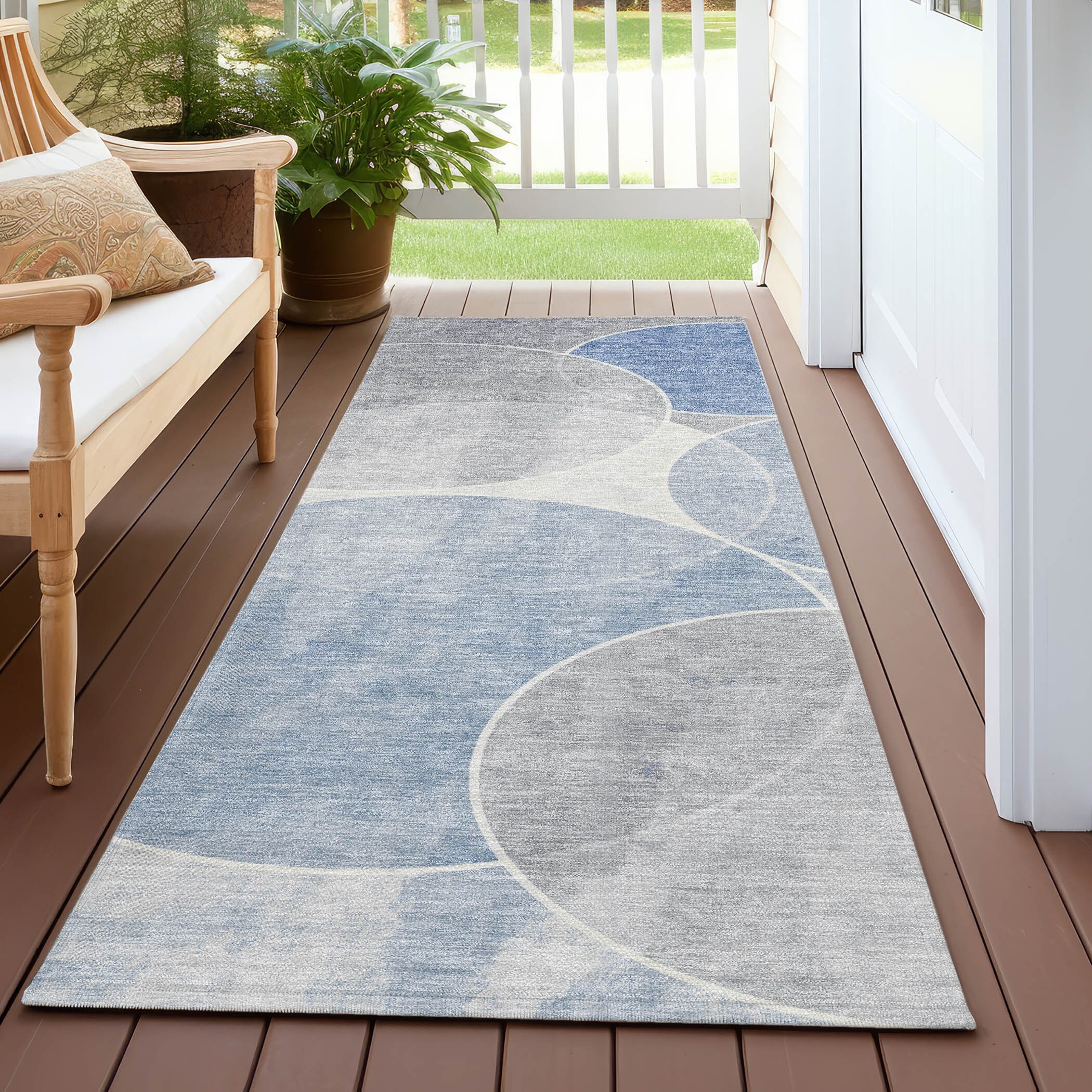 Machine Washable Indoor/ Outdoor Abstract Circles Chantille Rug