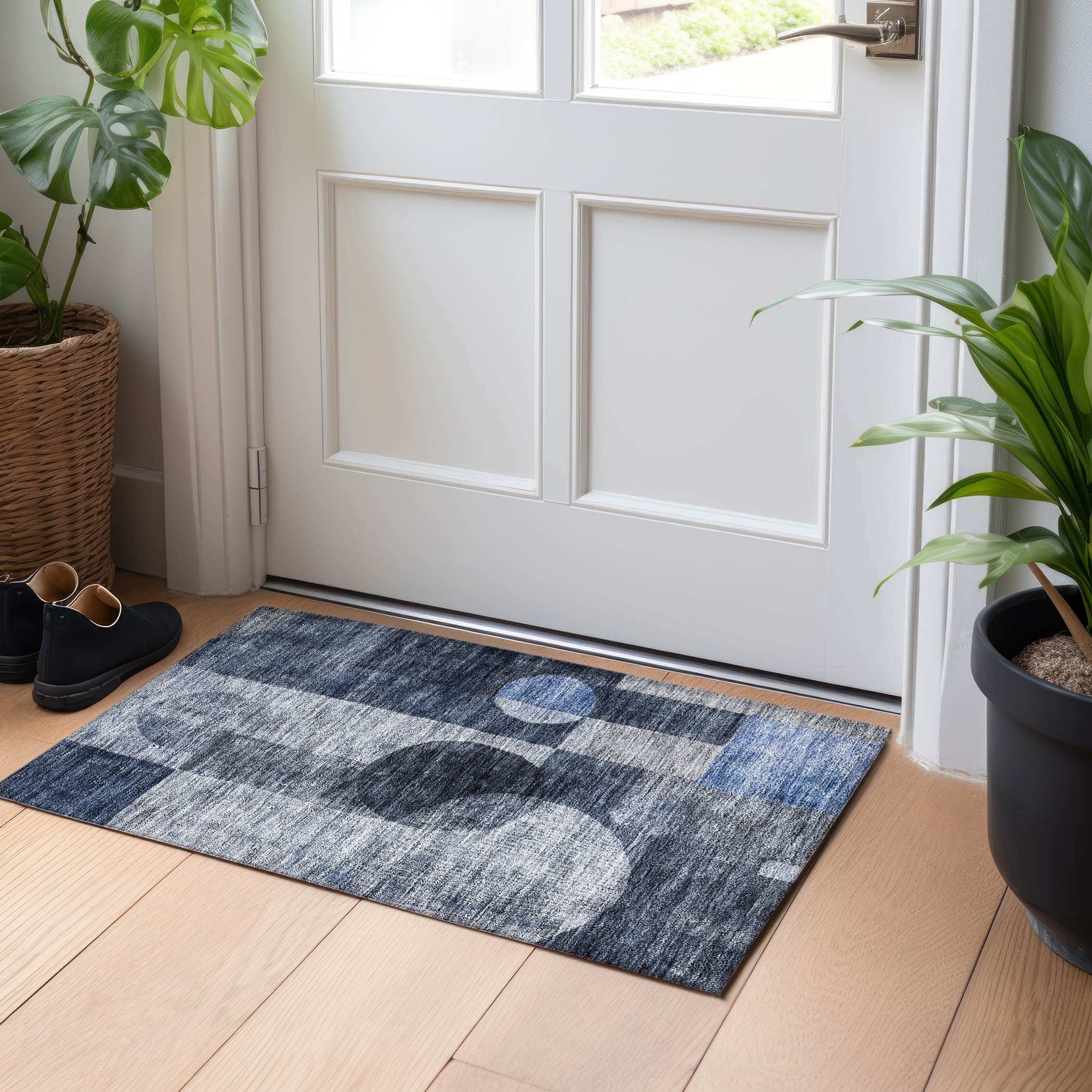 Machine Washable Indoor/ Outdoor Abstract Geo Chantille Rug