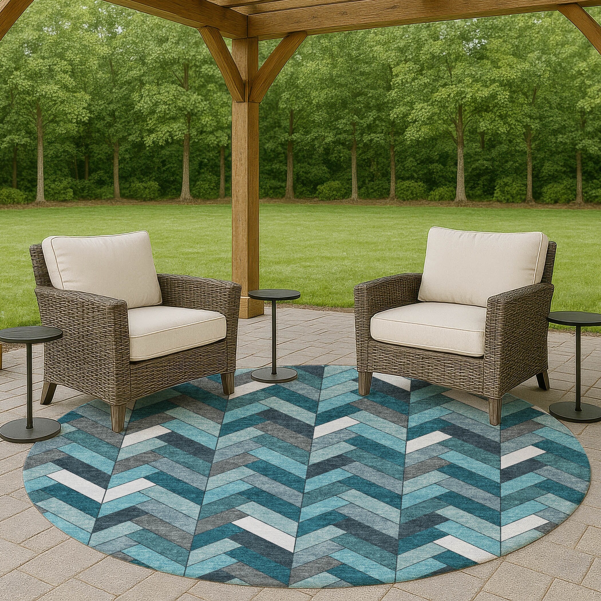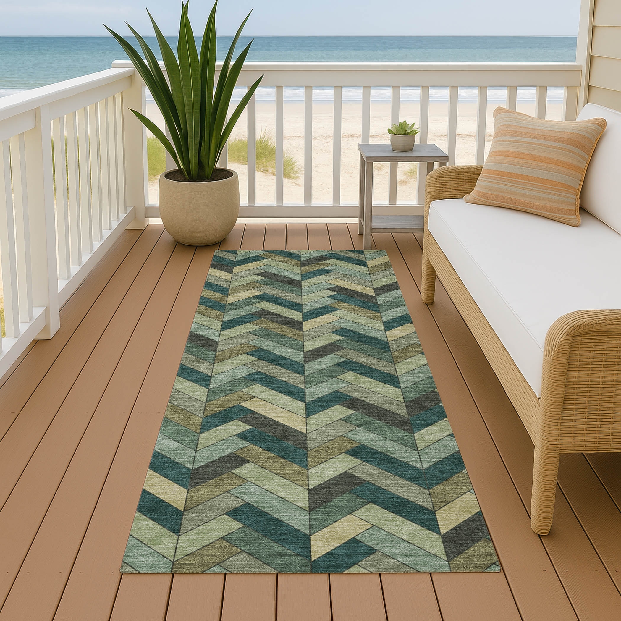 Machine Washable Indoor/ Outdoor Modern Chevron Chantille Rug