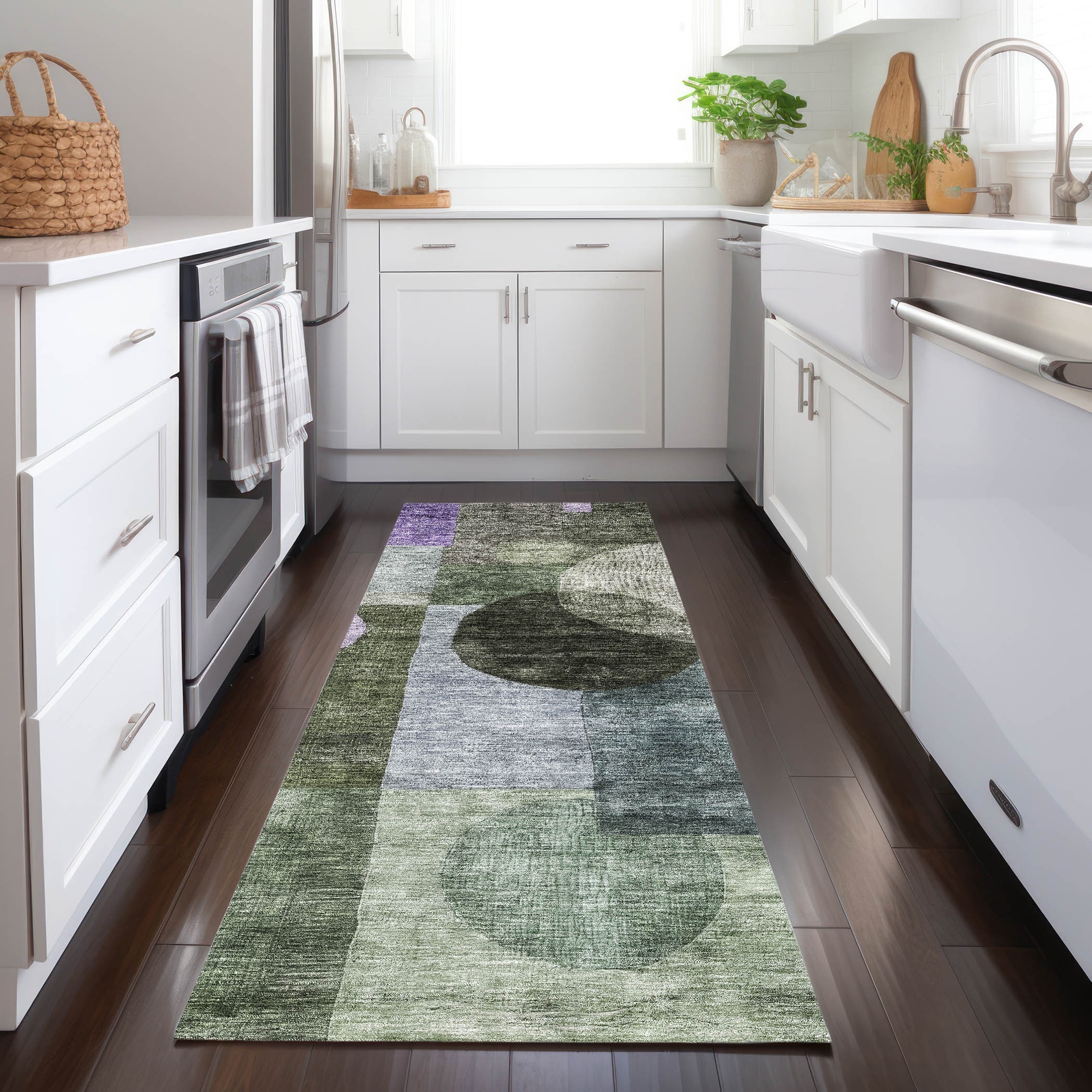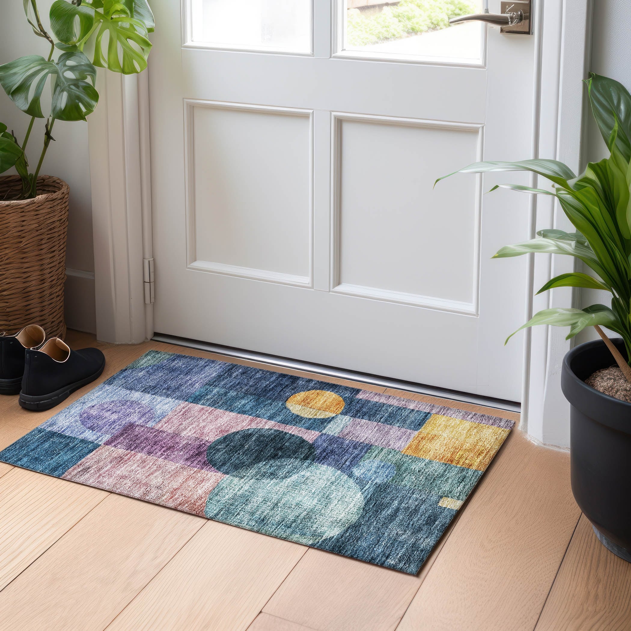 Machine Washable Indoor/ Outdoor Geo Patchwork Chantille Rug