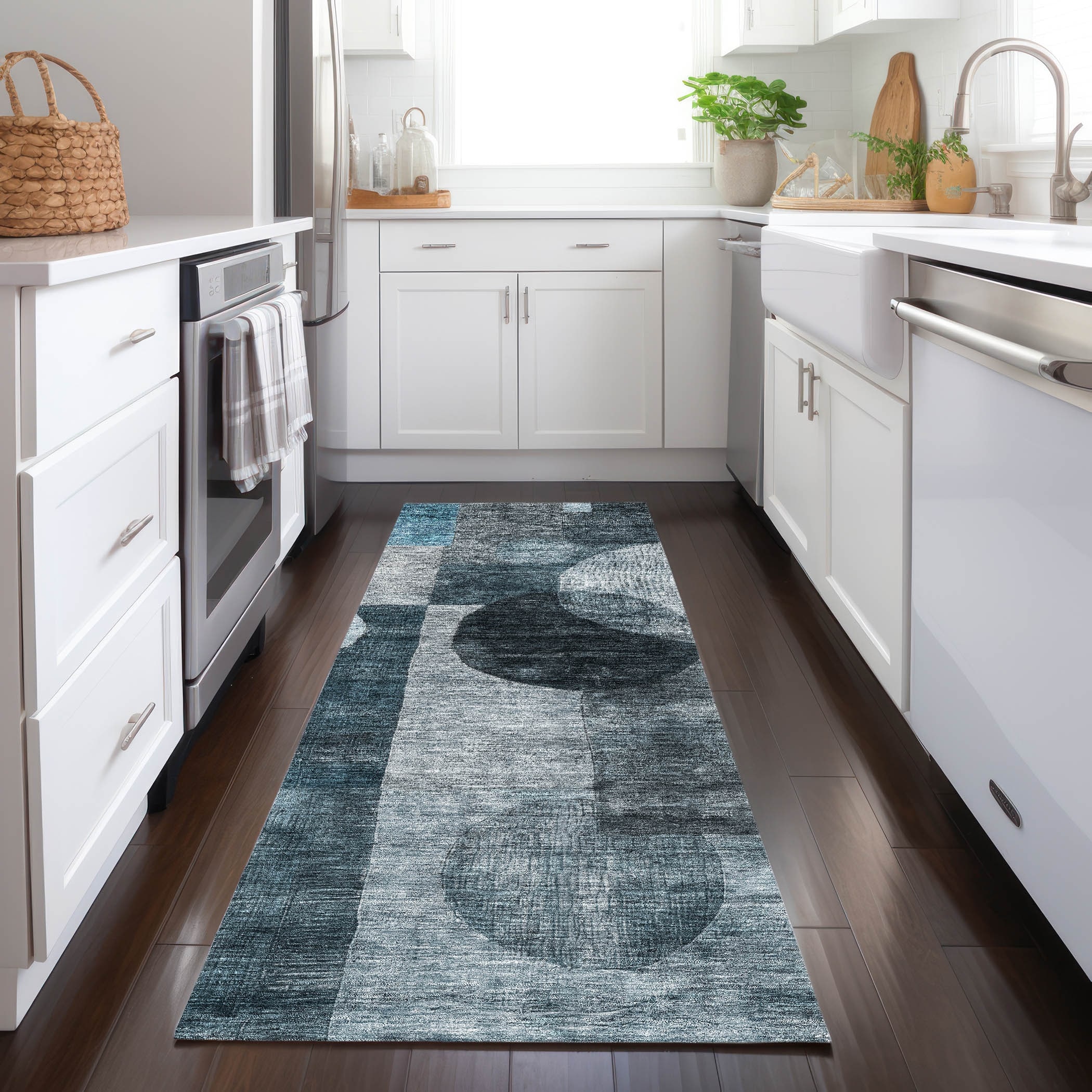 Machine Washable Indoor/ Outdoor Contemporary Mosaic Chantille Rug