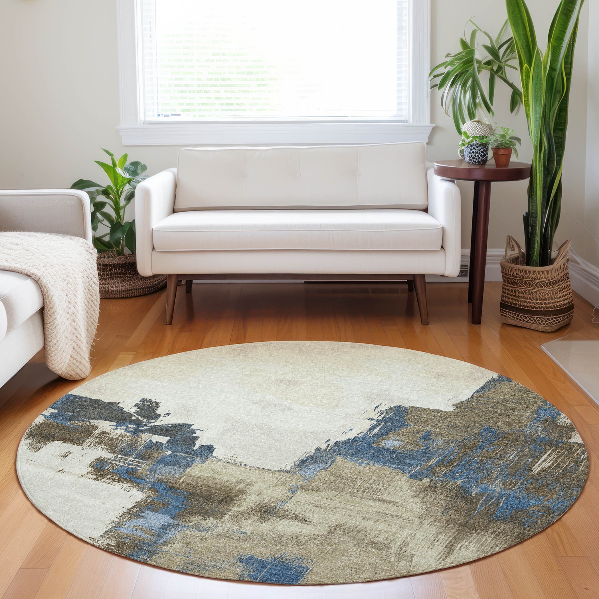 Machine Washable Indoor/ Outdoor Abstract Contemporary Chantille Rug