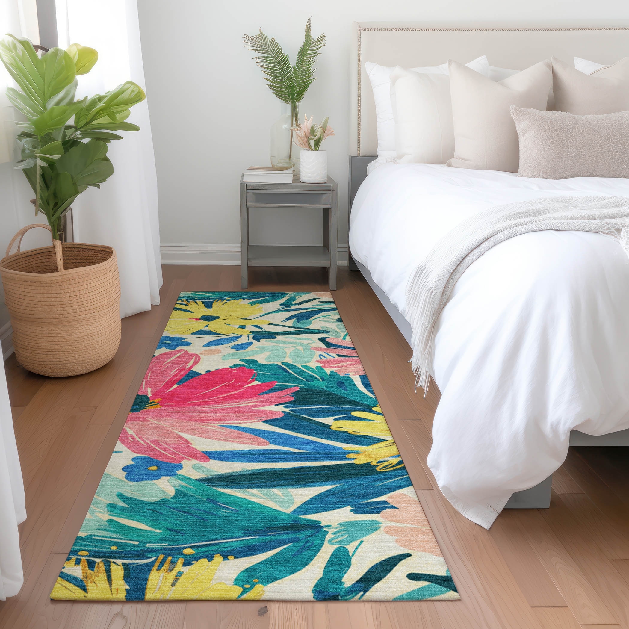 Machine Washable Indoor/ Outdoor Modern Floral Chantille Rug
