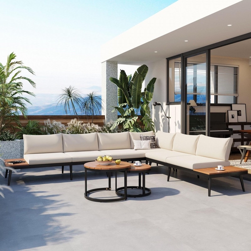 6-Piece Outdoor Sectional Sofa Set with Cushions and Nesting Coffee Tables for Patio,Porch and Garden