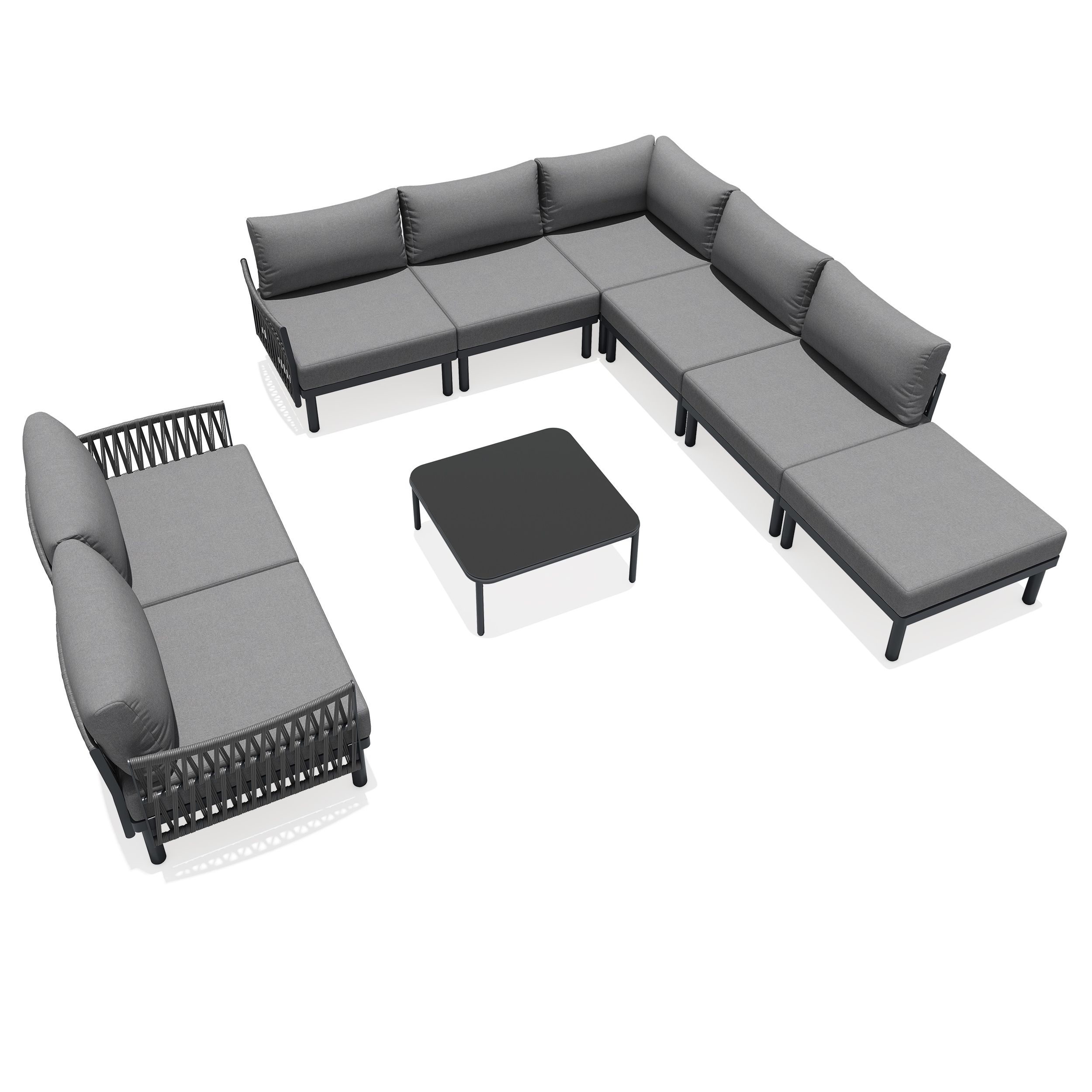 Outdoor Modular Cushioned Aluminum Sectional Sofa Set Free Combination Patio Conversation Set
