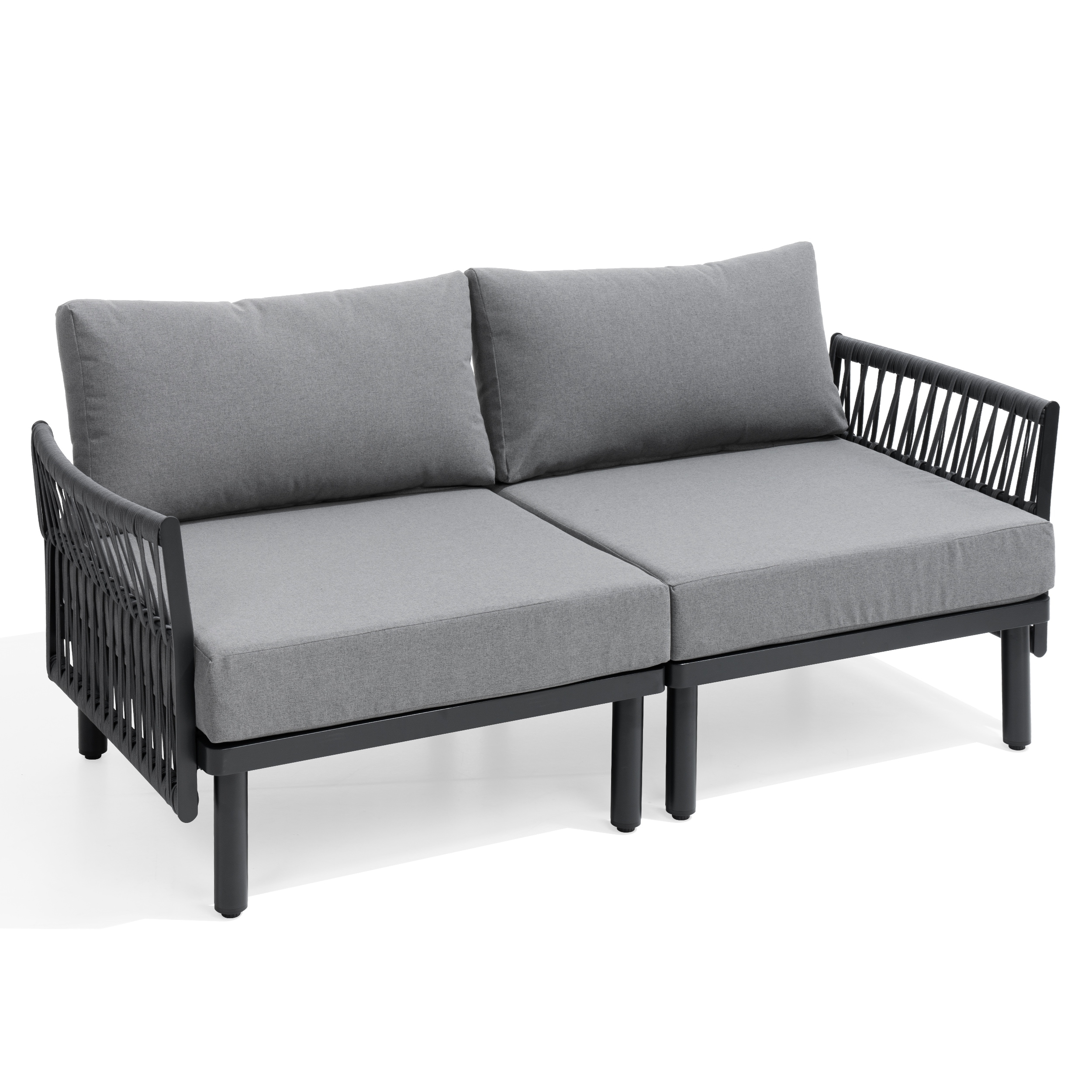 Outdoor Modular Aluminum Cushioned Sectional Sofa Set PE Rattan Sofa with Table Patio Conversation Set, Free Combination