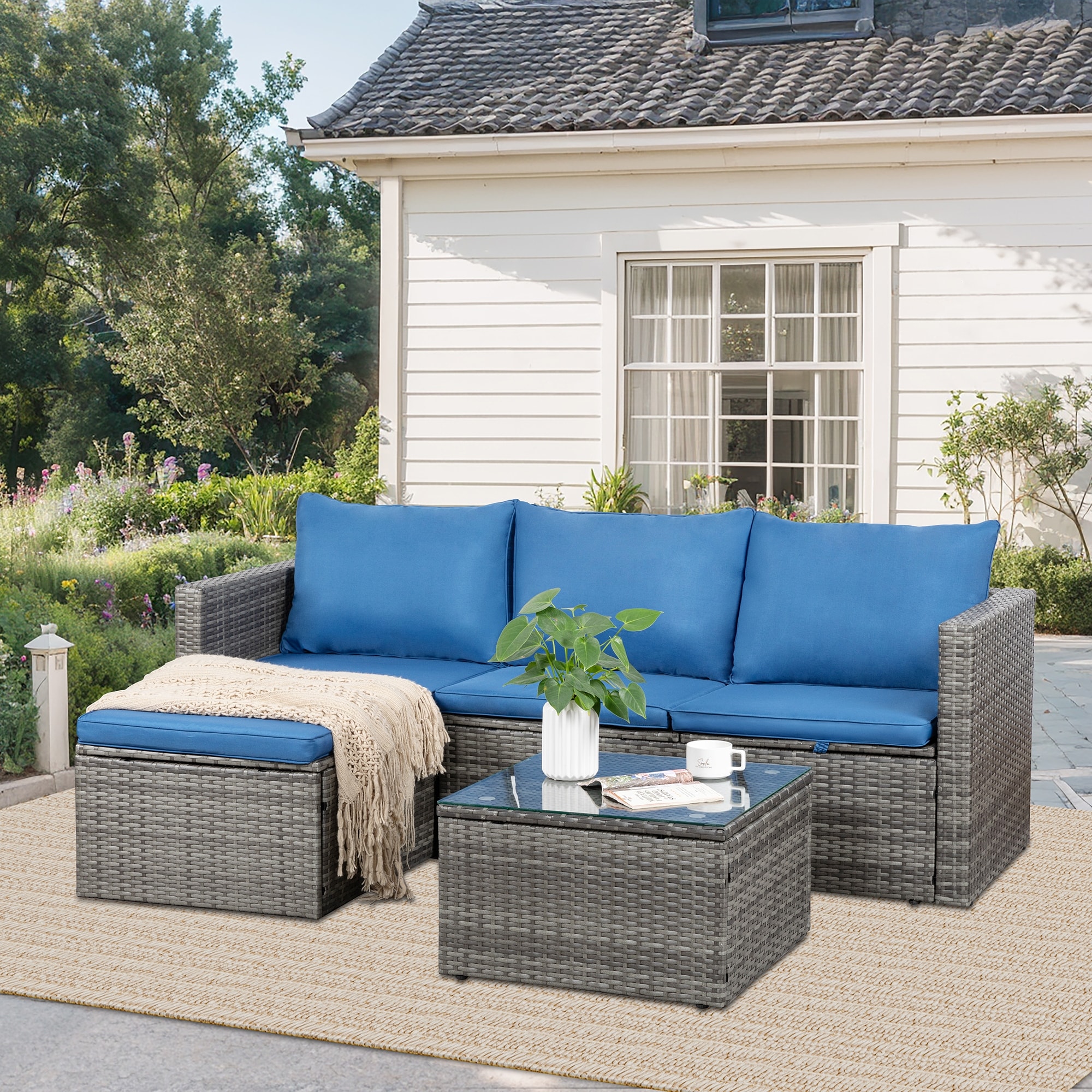 3-Piece Outdoor Wicker Sectional Sofa Set with Cushions, Patio Furniture Set - N/A