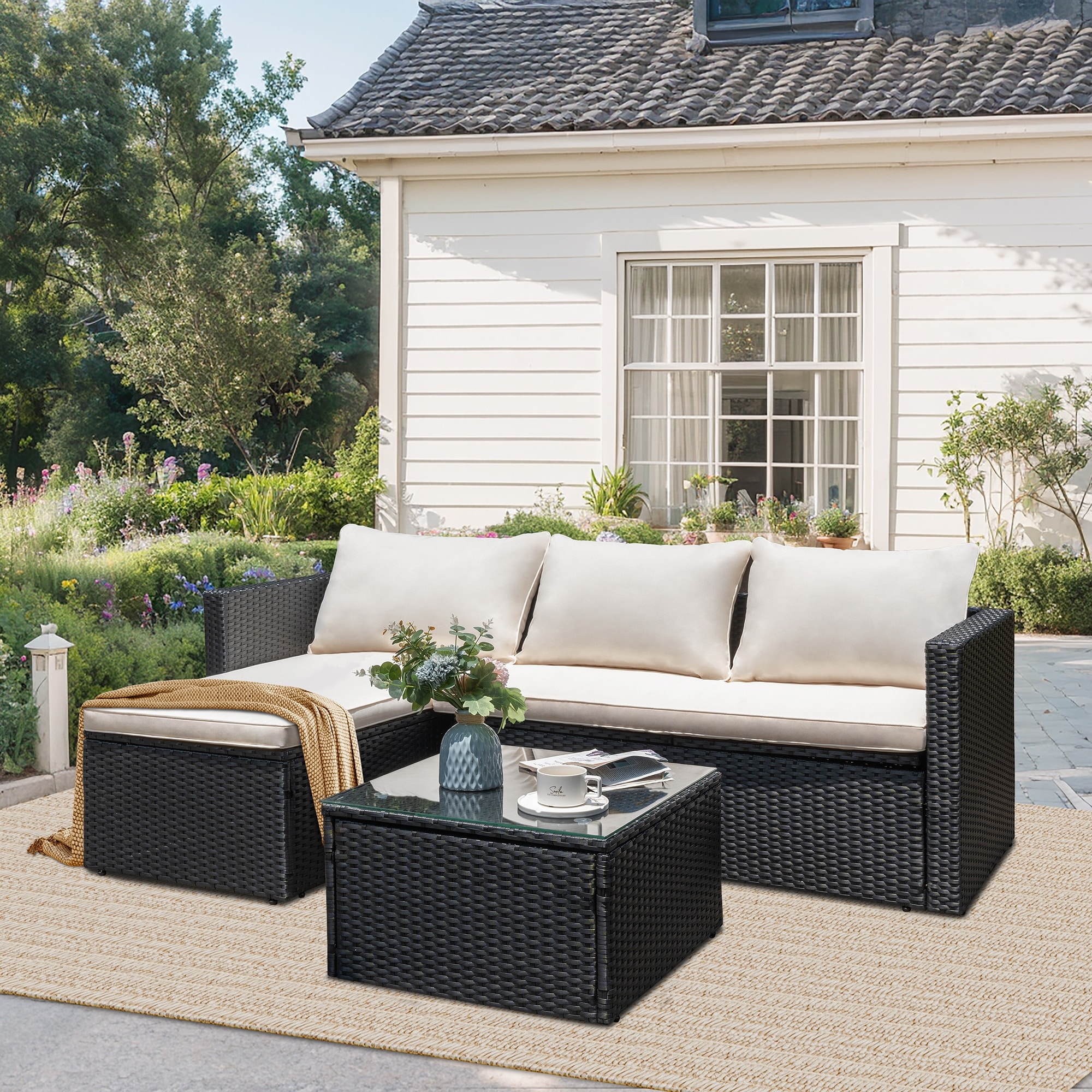 vidaXL Garden Sofa Set Black, Cream White - 24.4 x 25.8 x 27.2
