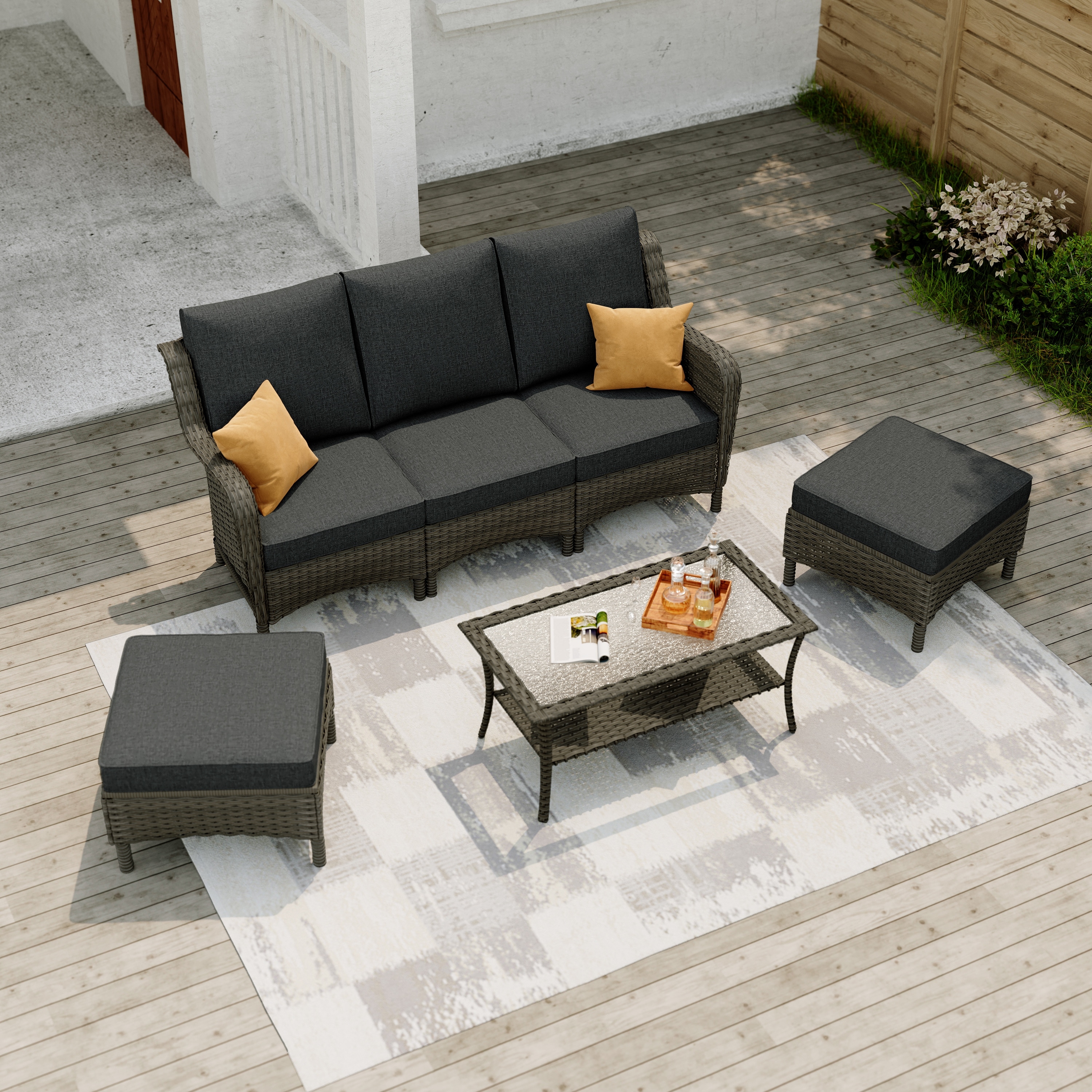 Rattan Wicker Patio Furniture Set Outdoor Sectional Sofa