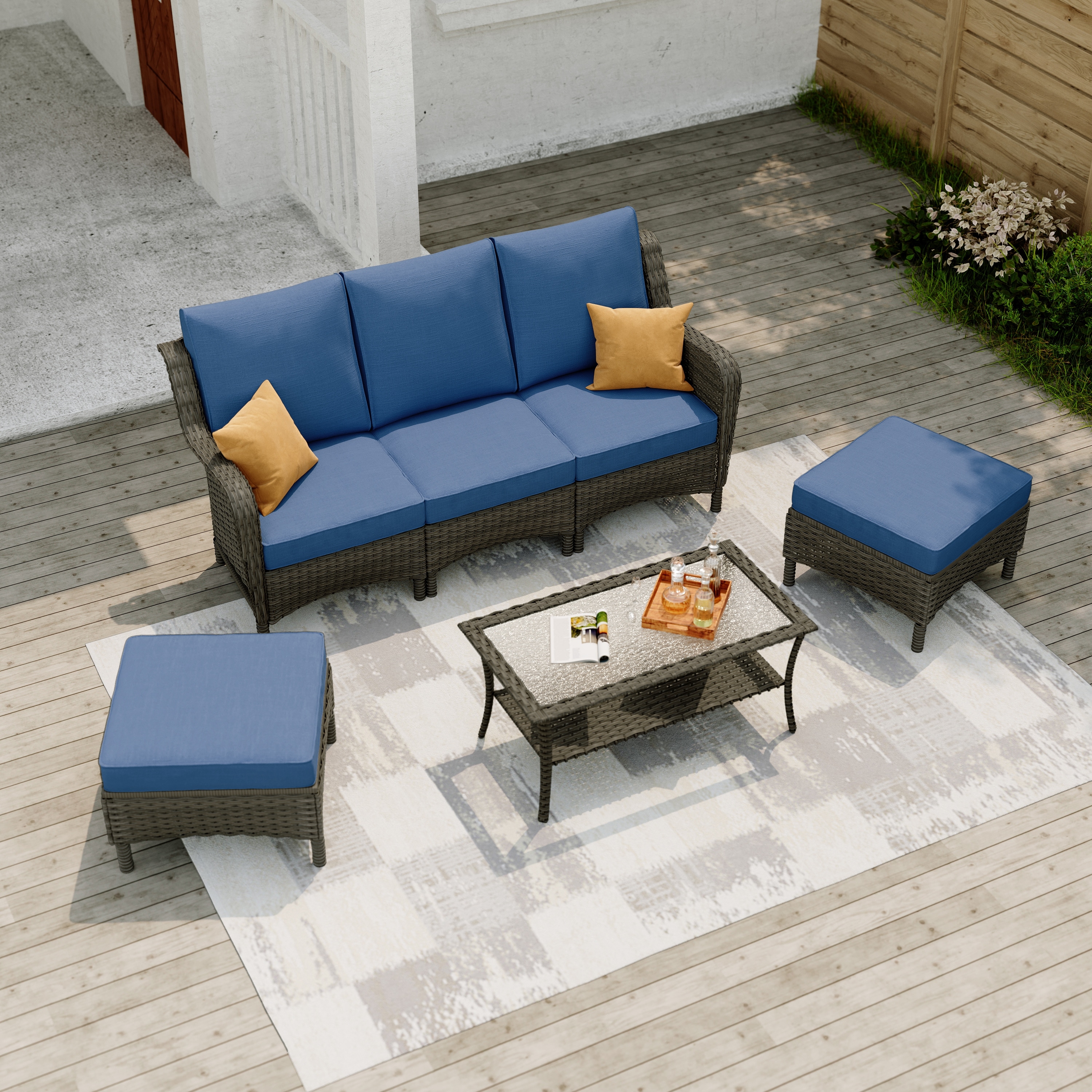 5-Piece Outdoor Rattan Conversation Set Wicker Chair with Cushions