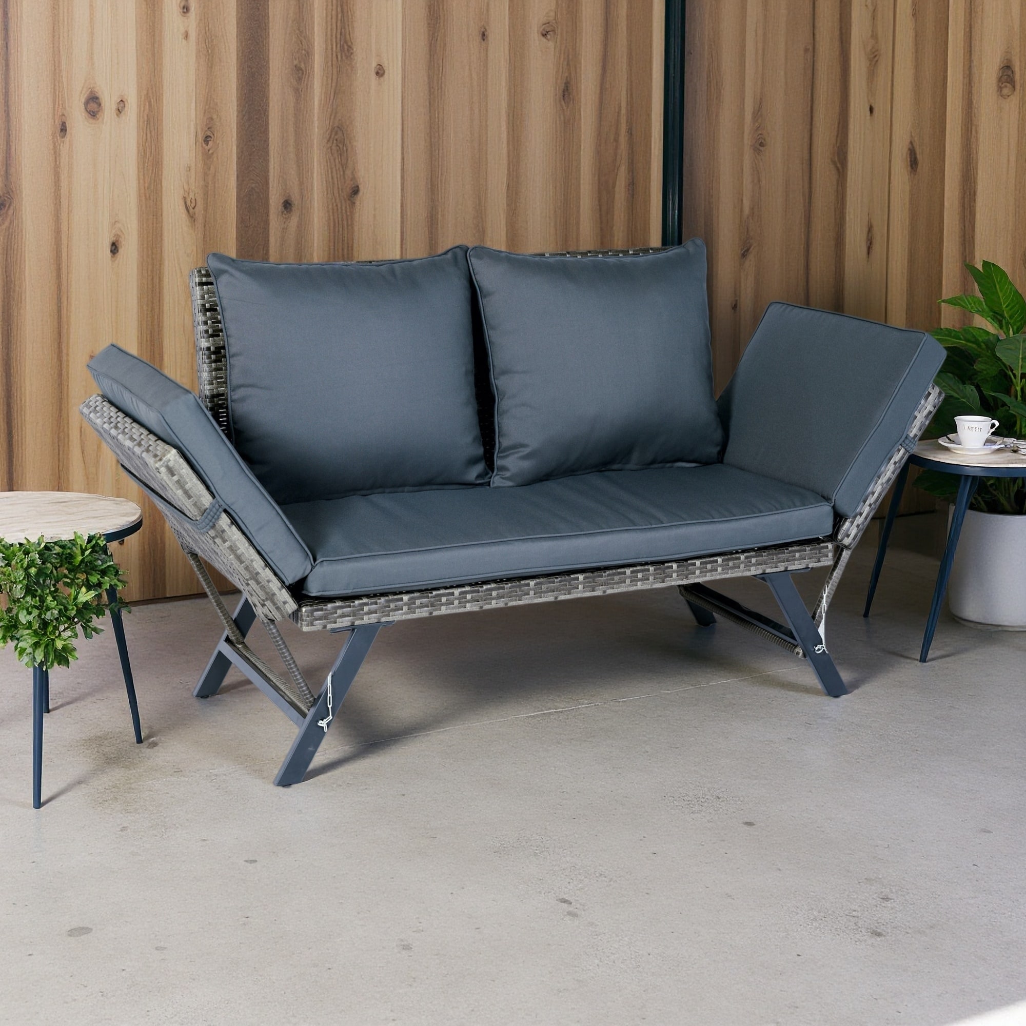 2-Seater Wicker Foldable Bench with Cushions for Patio, Backyard