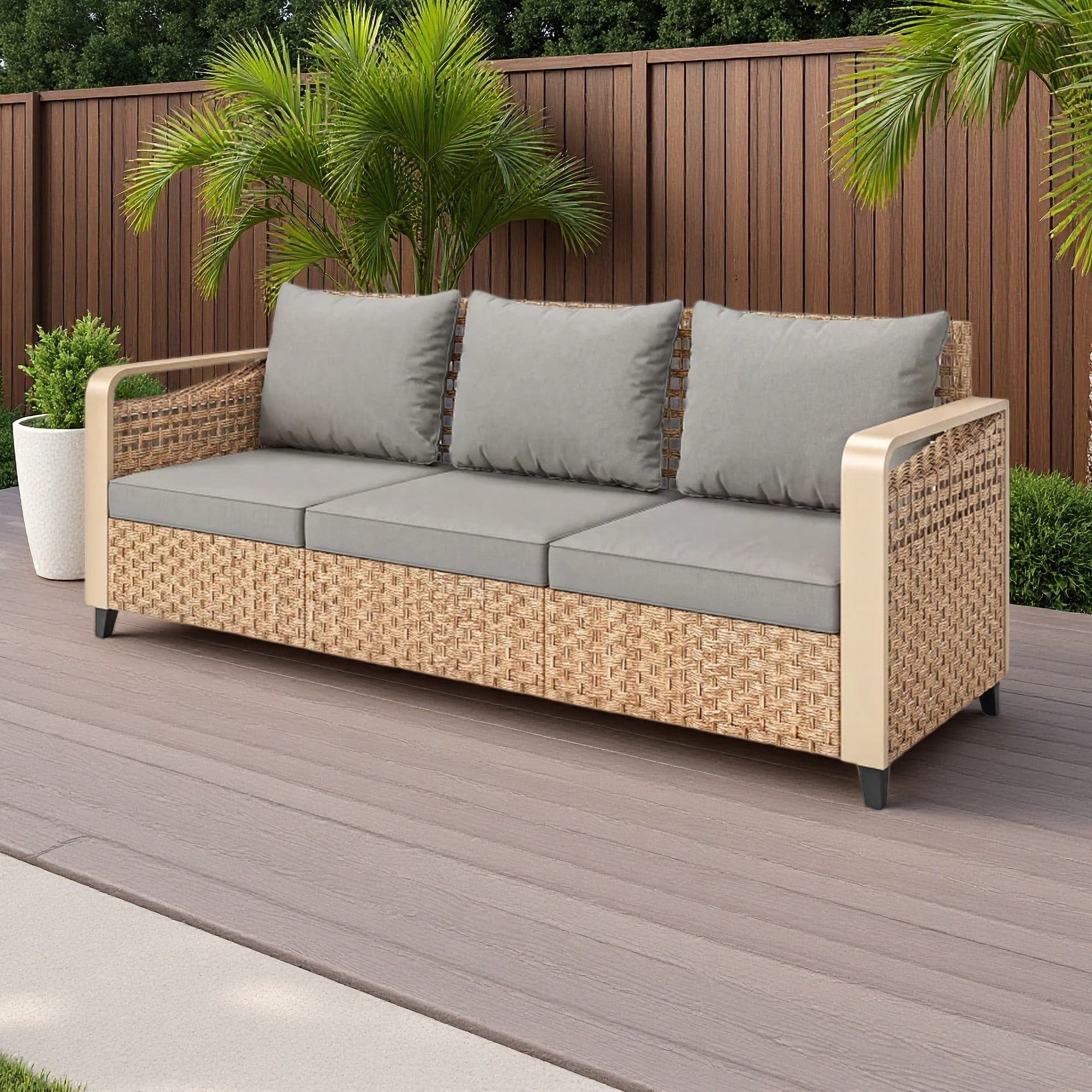 3-Seater Outdoor Patio Wicker Sofa with Plush Cushion Combination for Balcony, Garden