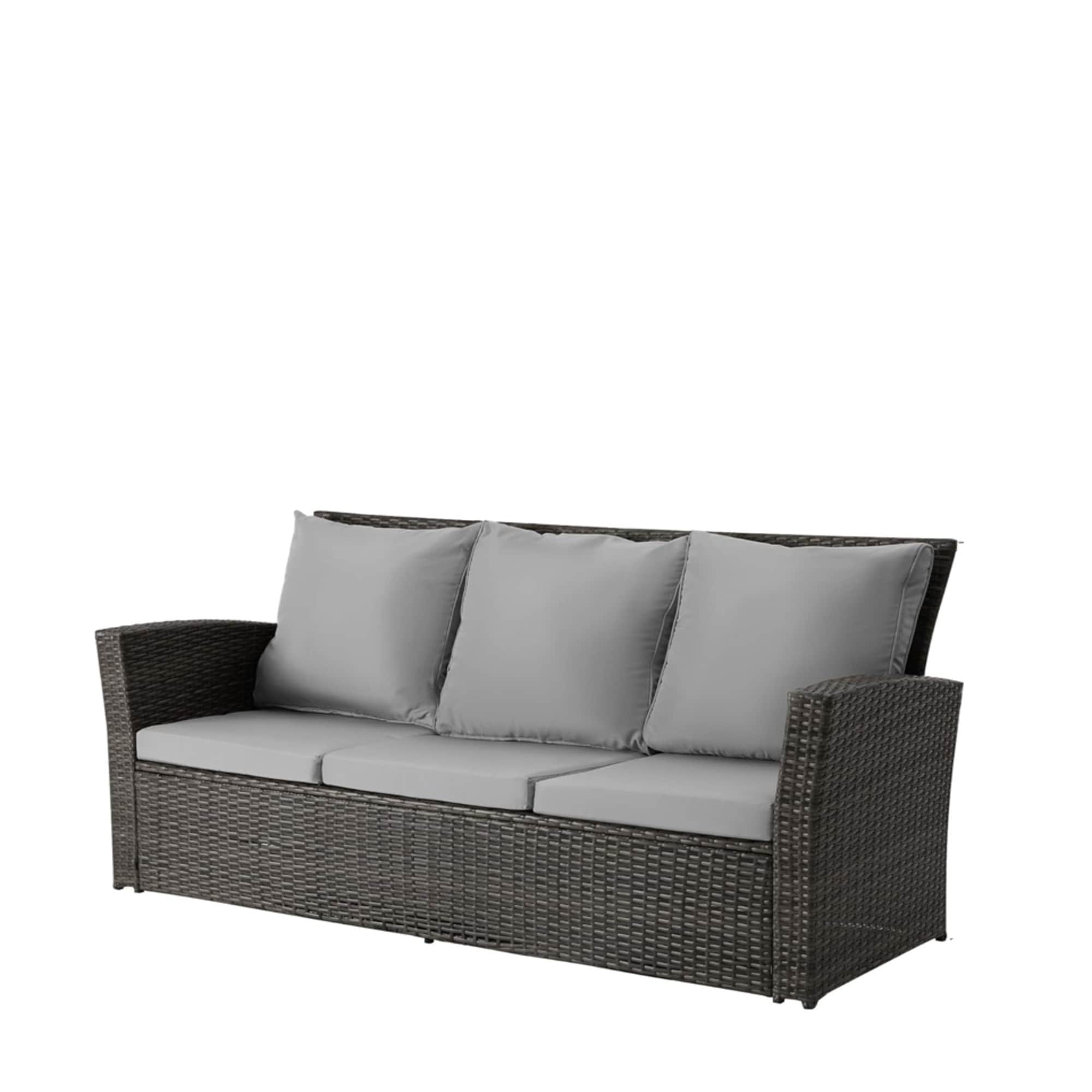 3-Seat Patio Wicker Sofa Soft Cushion Grey - Grey