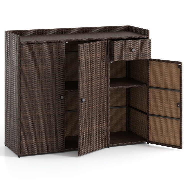 Mix Brown PE Rattan Patio Storage Cabinet with Metal Frame and Drawer - 48" x 17" x 40"