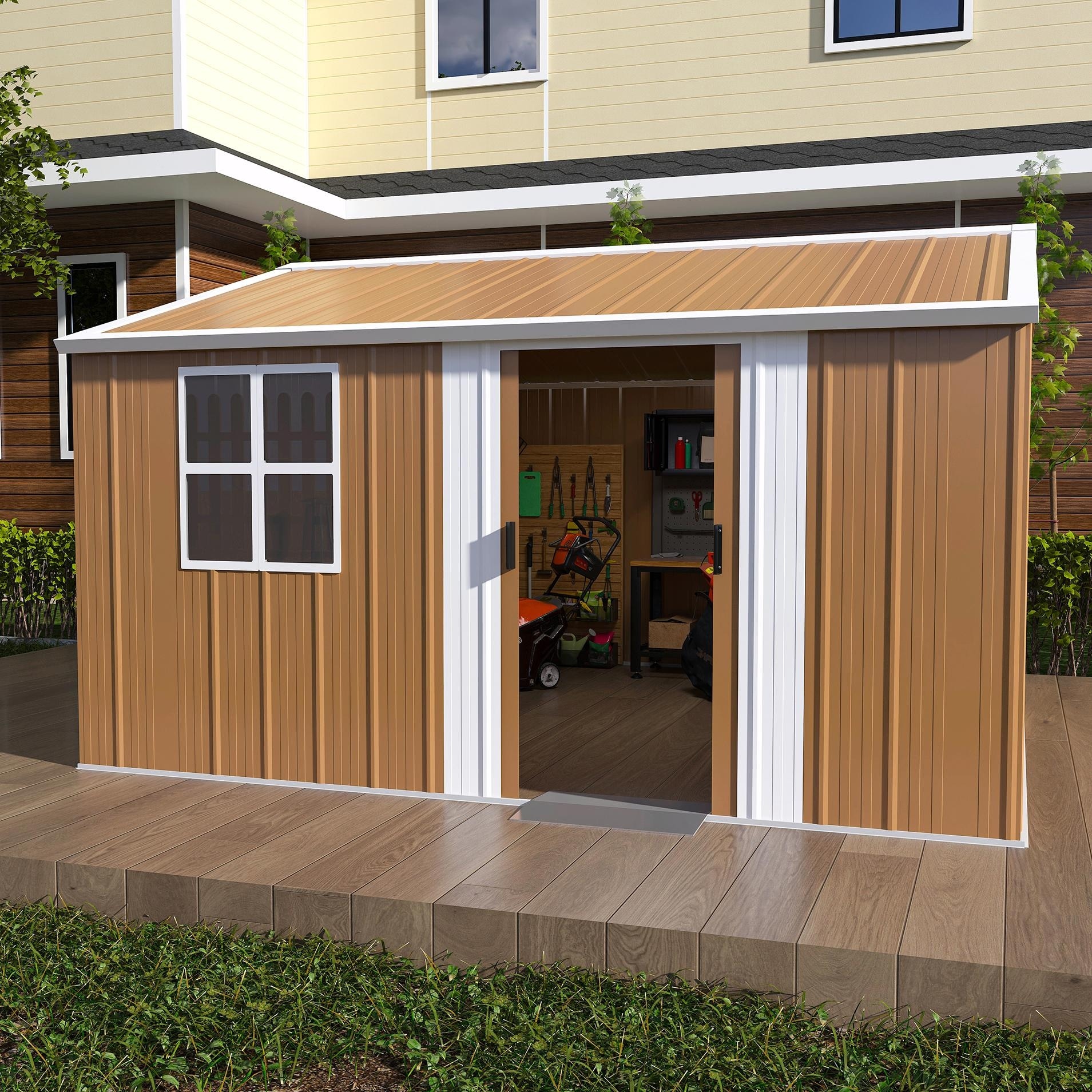 Rust-resistant Steel Storage Shed with Waterproof Panels & Sliding Lockble Door Garden Shed Tool Shed Pet Shed